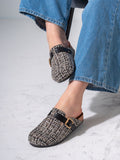 Crafted from premium tweed fabric, these buckle-strap clogs blend timeless British heritage with contemporary comfort. The adjustable buckle closure ensures a secure, customizable fit, while the clog silhouette provides easy on-and-off convenience. Ideal for both casual outings and refined everyday wear, these shoes deliver sophisticated style without compromising on practicality. Perfect for those who appreciate quality craftsmanship and understated elegance.