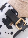 Faux Fur Cow Print Clogs - BLACK