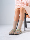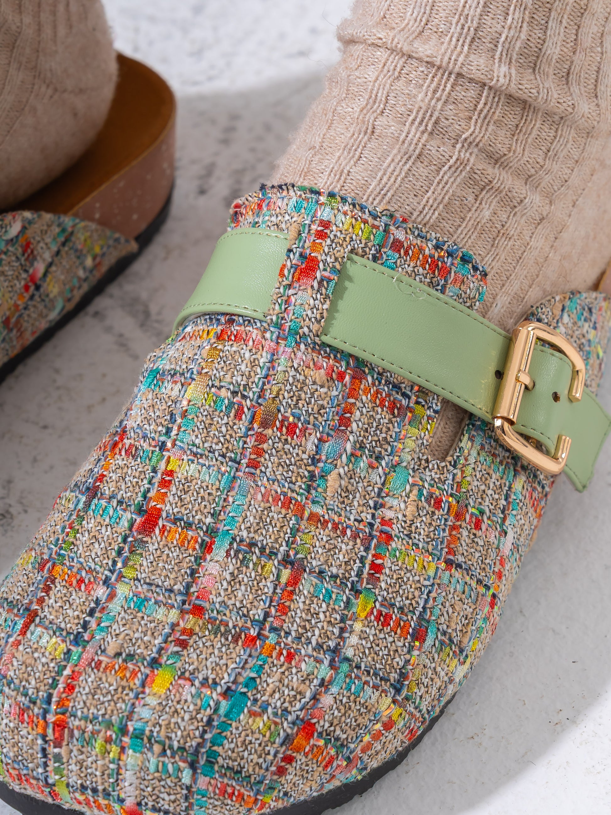 Textured Tweed Buckled Clogs - GREEN