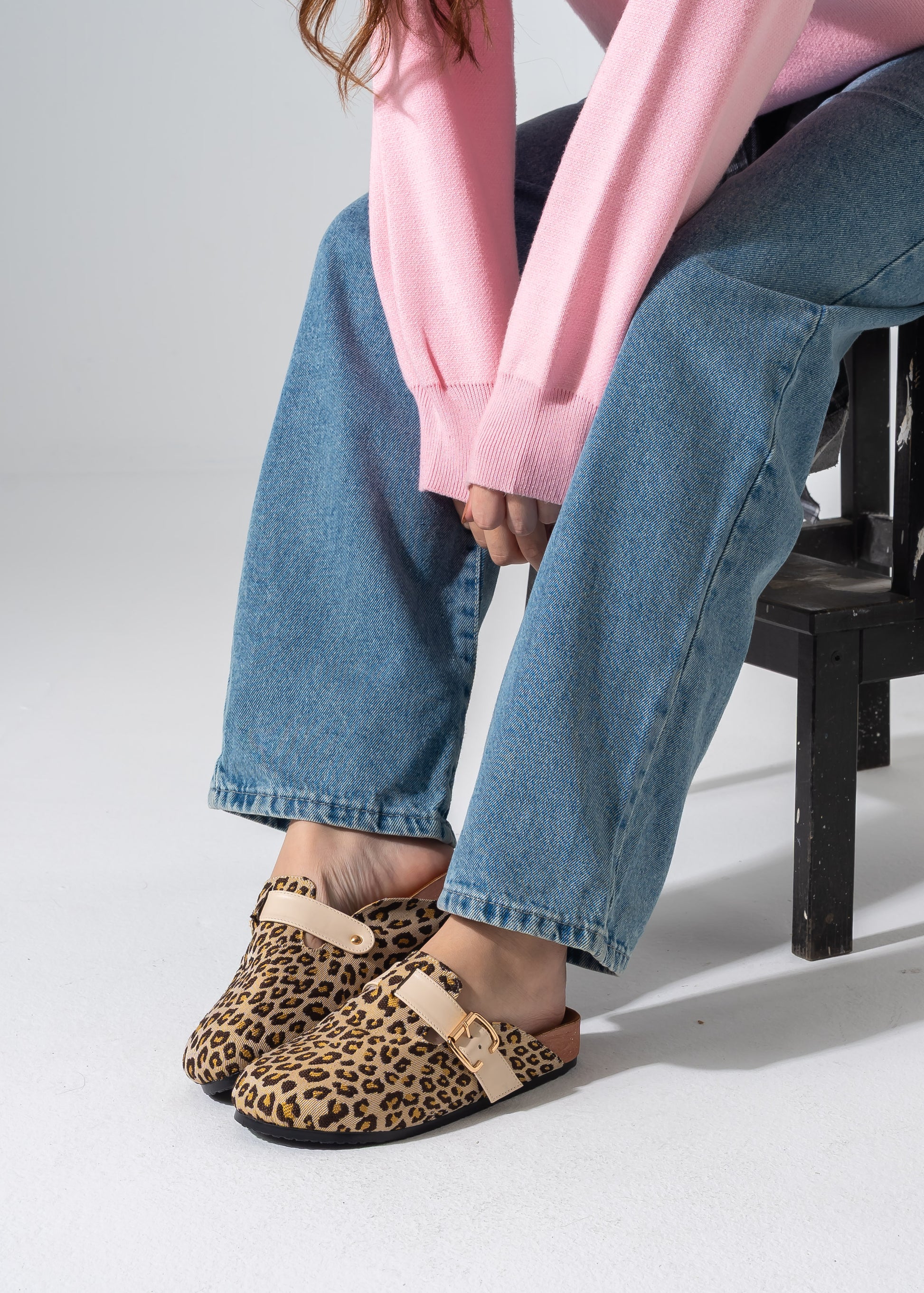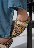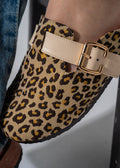 Step into the wild with these Leopard-print clogs, crafted with a textured fabric and a sleek gold-tone buckle. These slip-on mules blend bold animal patterns with ultimate comfort, making them a standout piece for any casual outfit