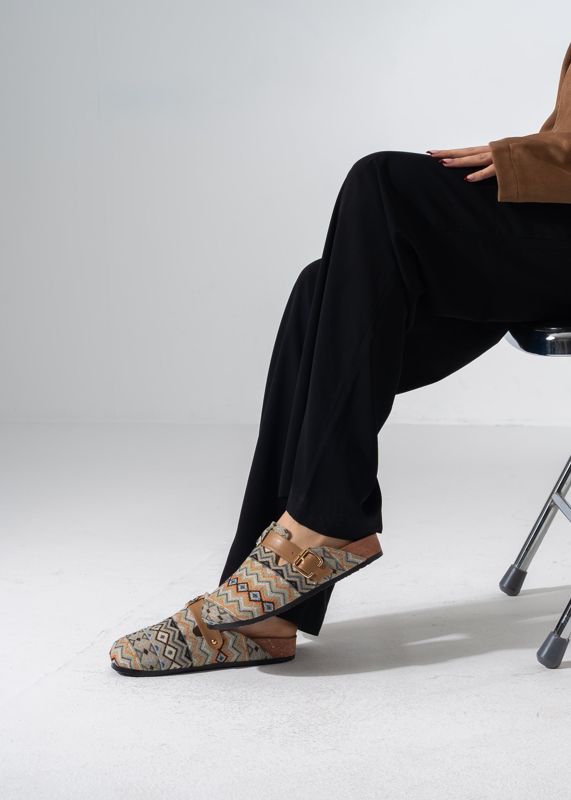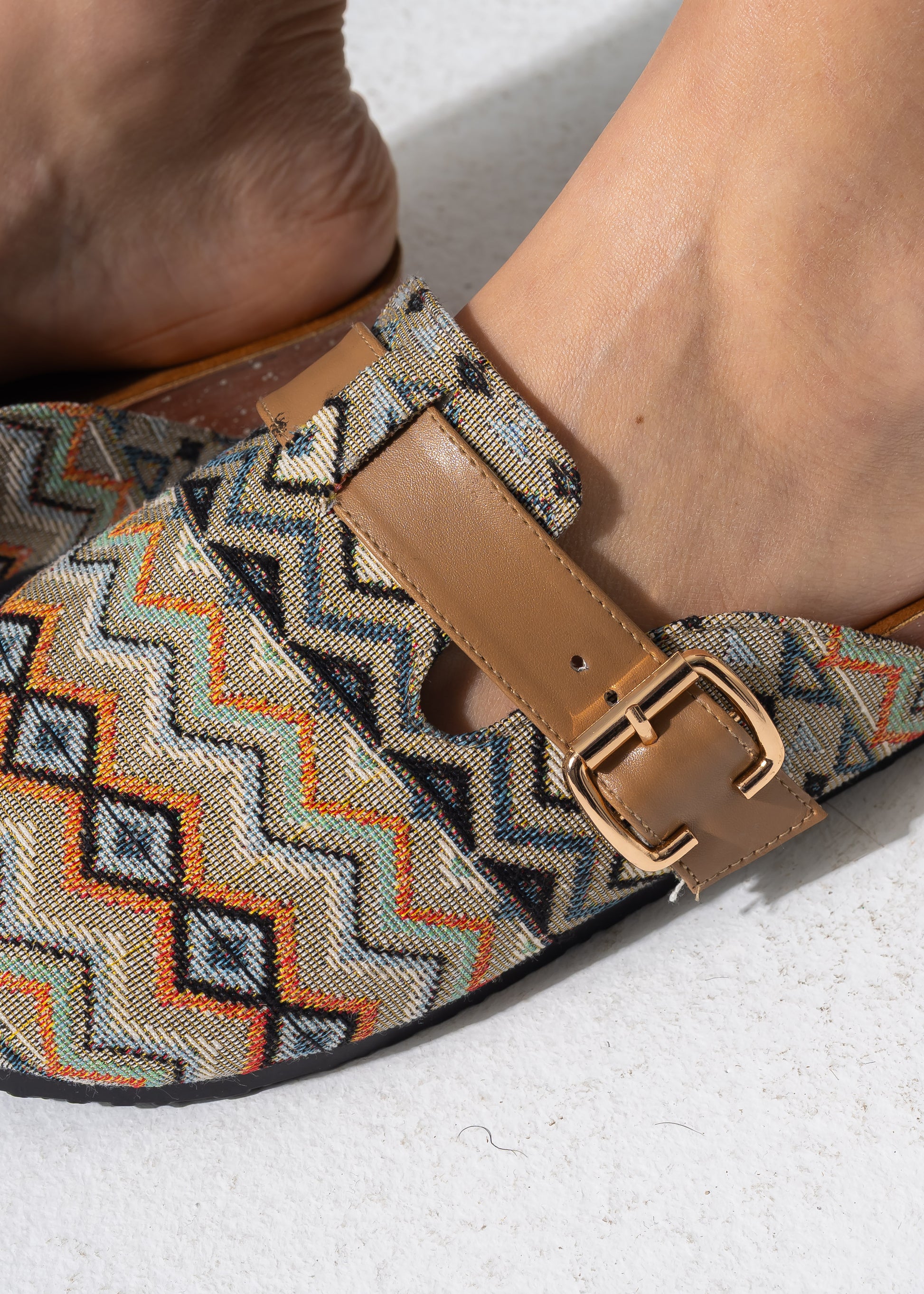 Embrace effortless style with these Bohemian-inspired clogs, featuring a vibrant woven tapestry upperand an adjustable buckle strap for a custom fit. Perfect for adding a touch of texture to your everyday look.