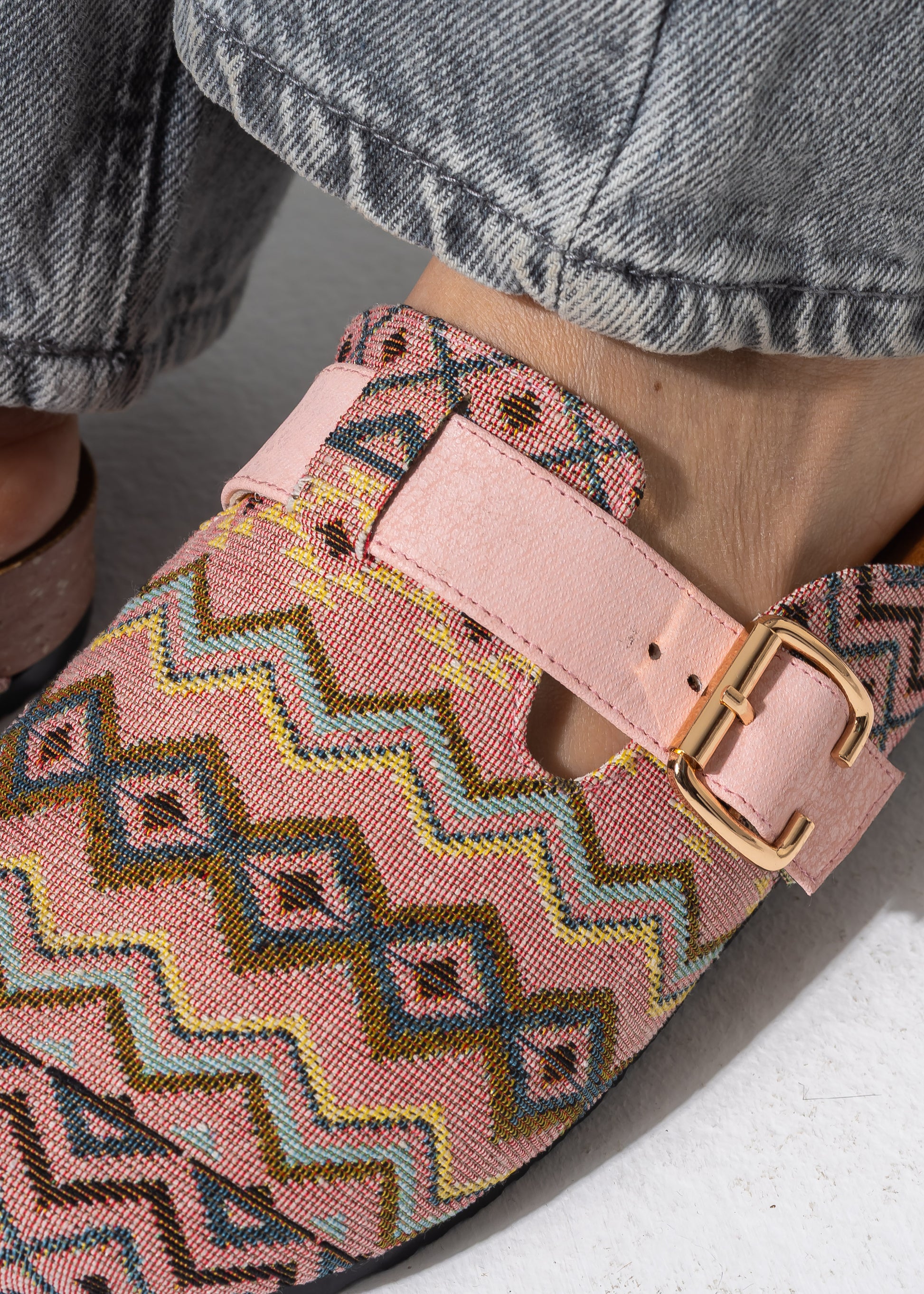 Embrace effortless style with these Bohemian-inspired clogs, featuring a vibrant woven tapestry upperand an adjustable buckle strap for a custom fit. Perfect for adding a touch of texture to your everyday look.
