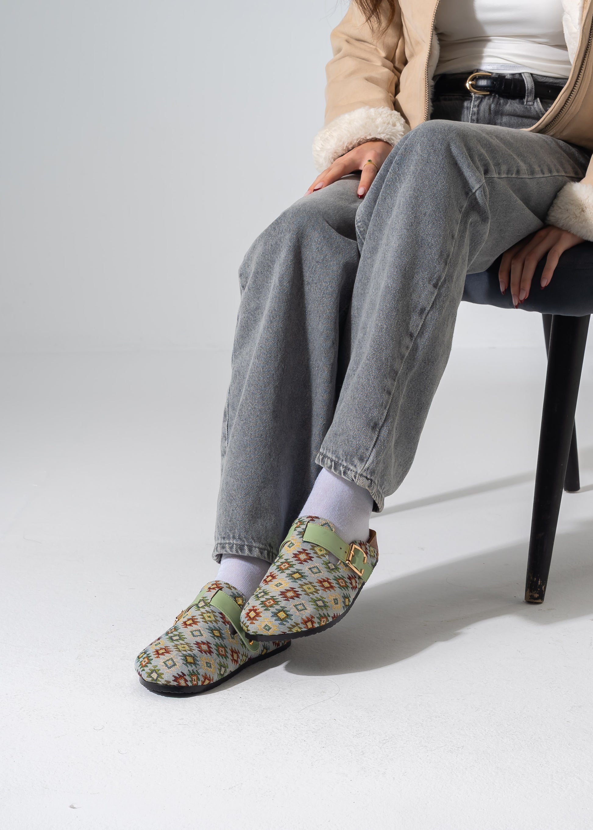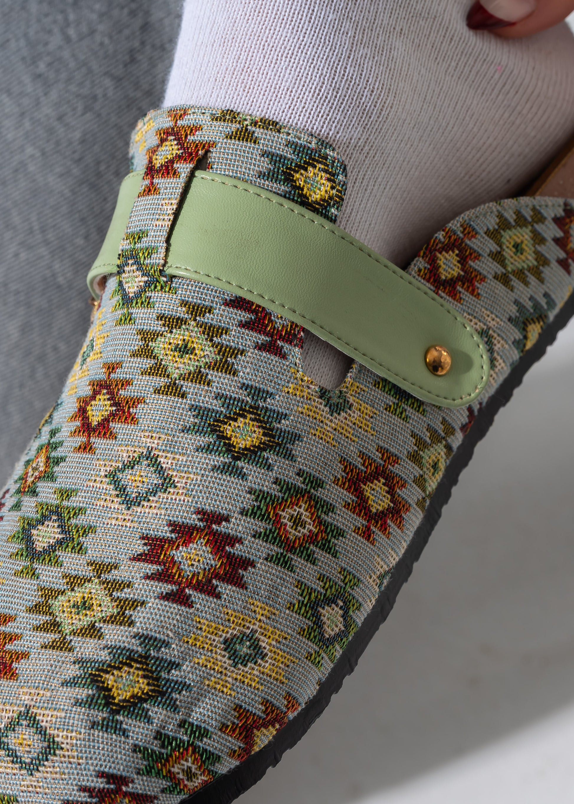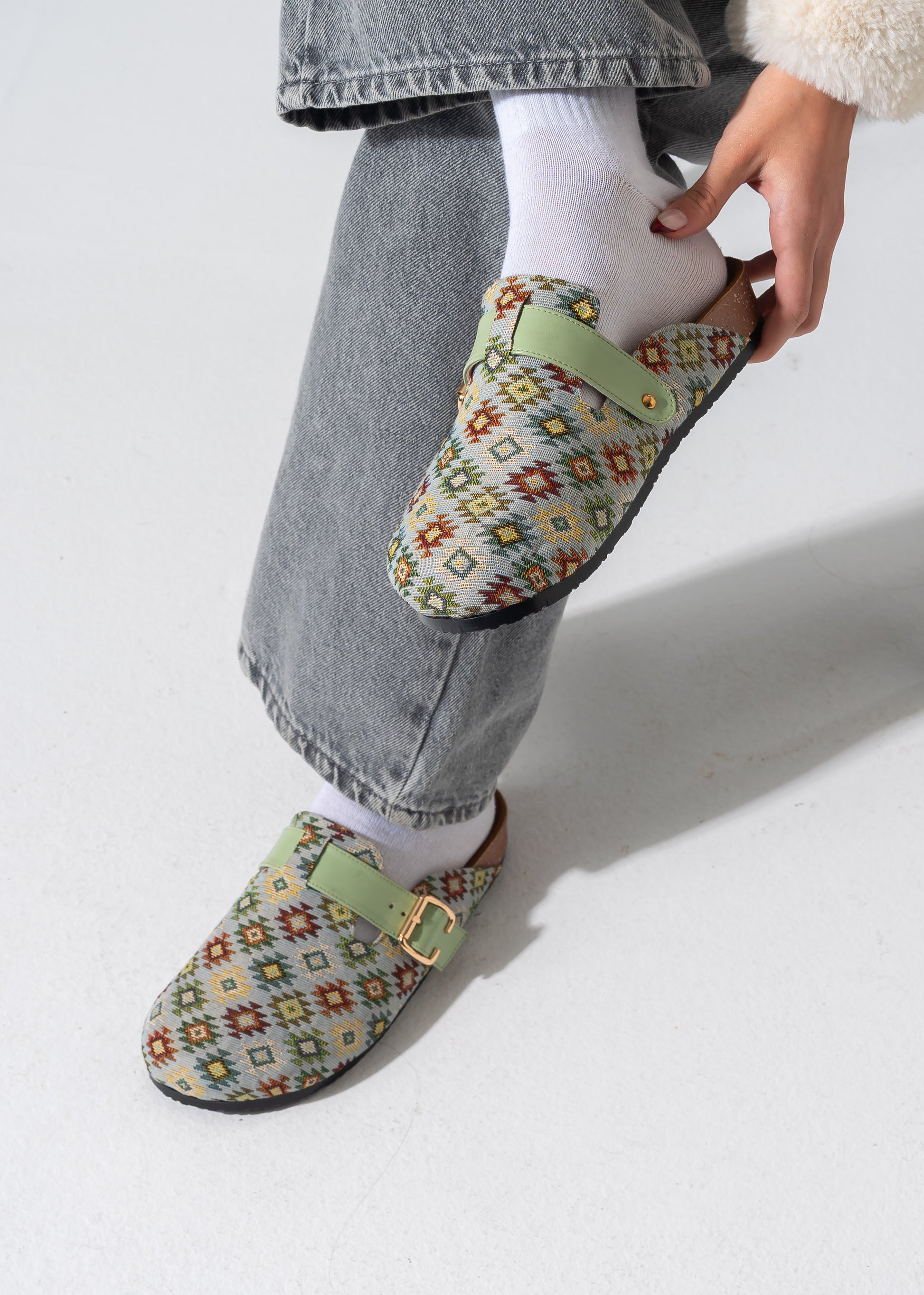 Boho Geometric Clogs - LIGHT GREEN