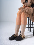 Suede Geometric-Strap Clogs combine comfort with contemporary design. Crafted from premium suede, these clogs feature distinctive geometric straps that add visual interest while ensuring a secure fit. The lightweight construction makes them ideal for all-day wear, whether you're navigating busy schedules or relaxing at home. The slip-on silhouette offers effortless styling, while the durable sole provides reliable traction and support. Perfect for those seeking footwear that balances practicality with modern aesthetics.