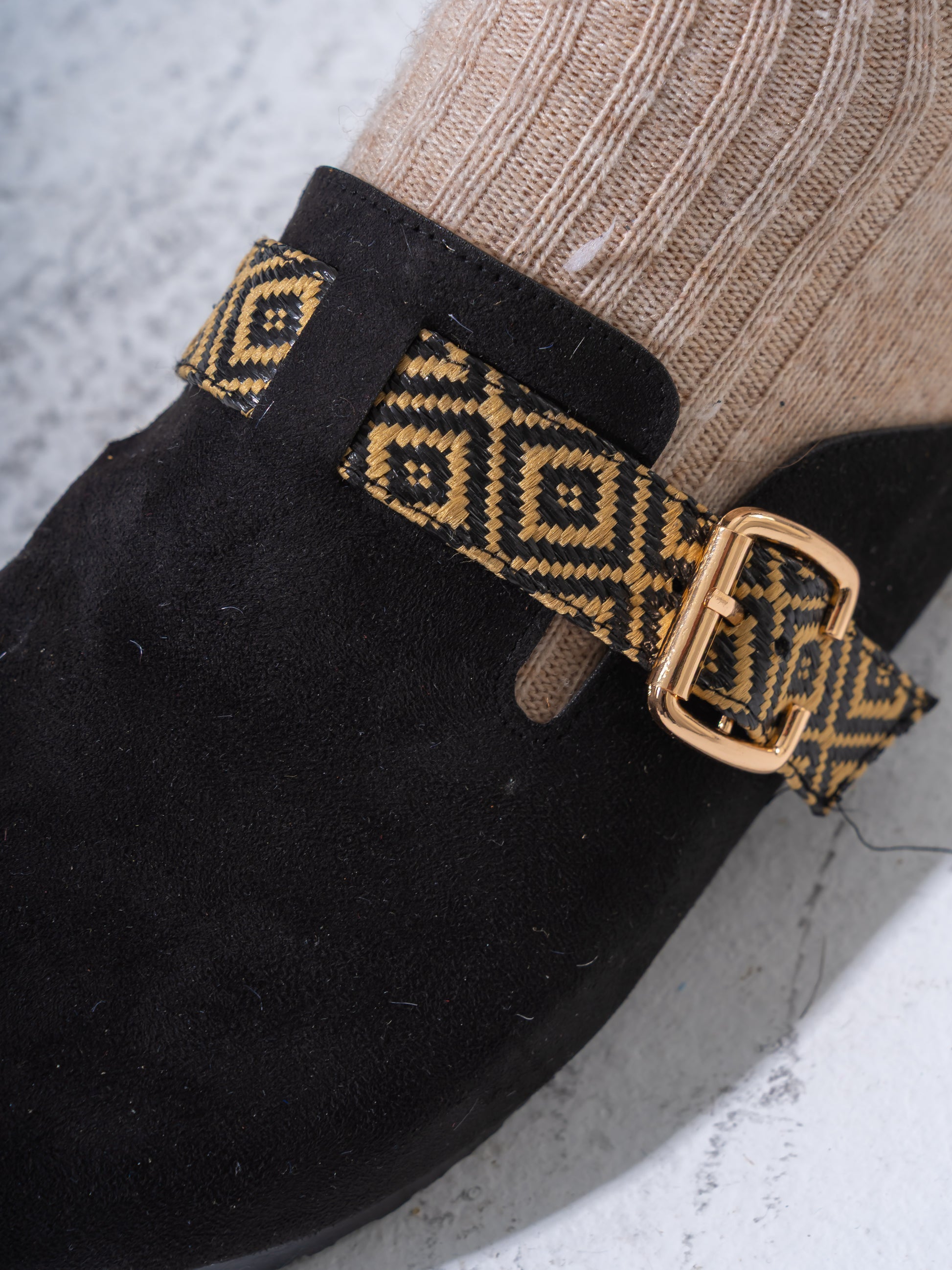 Suede Geometric-Strap Clogs - BLACK