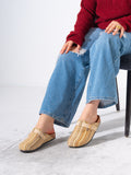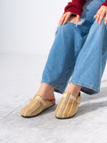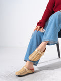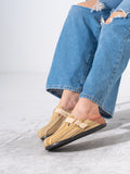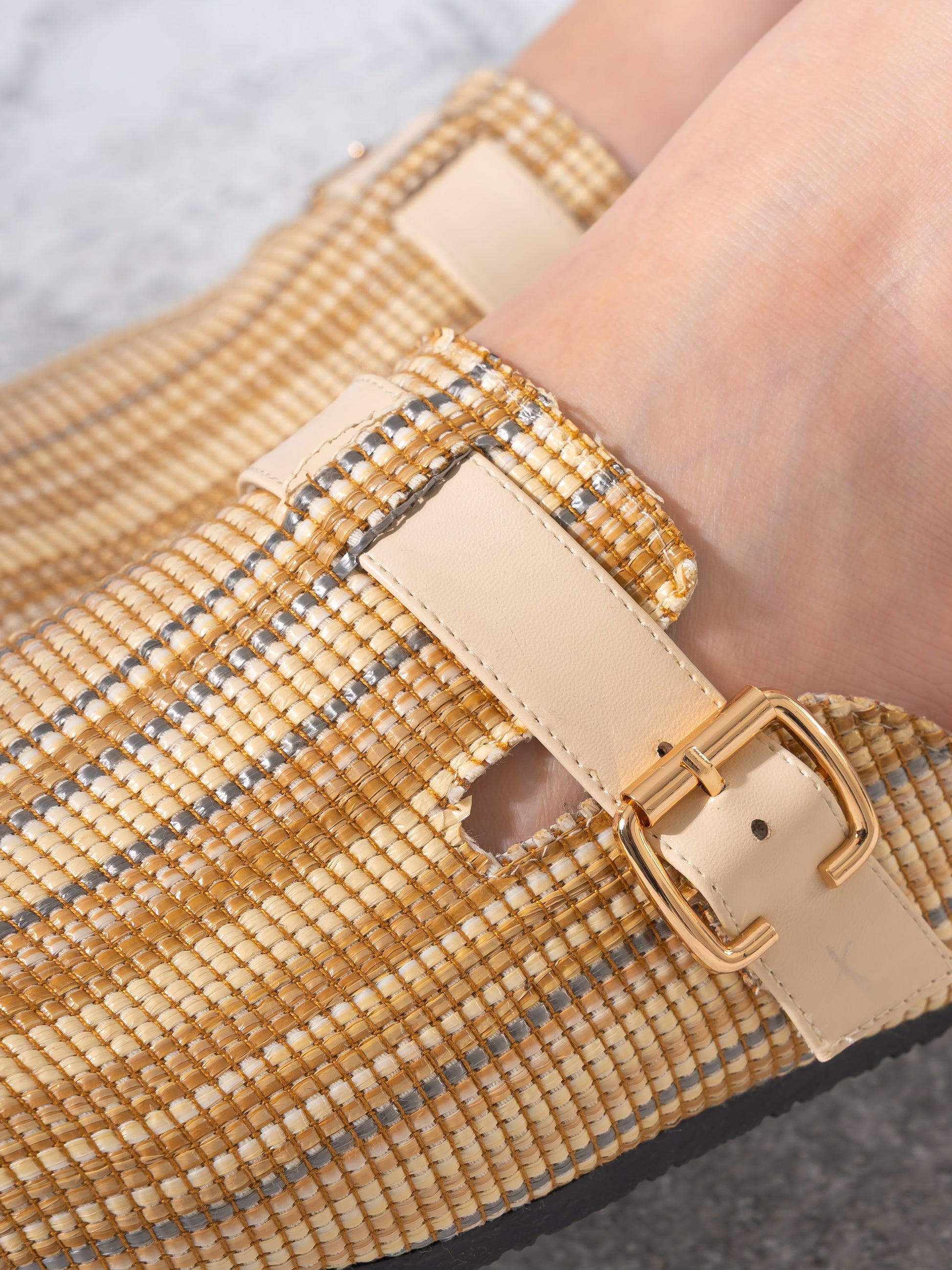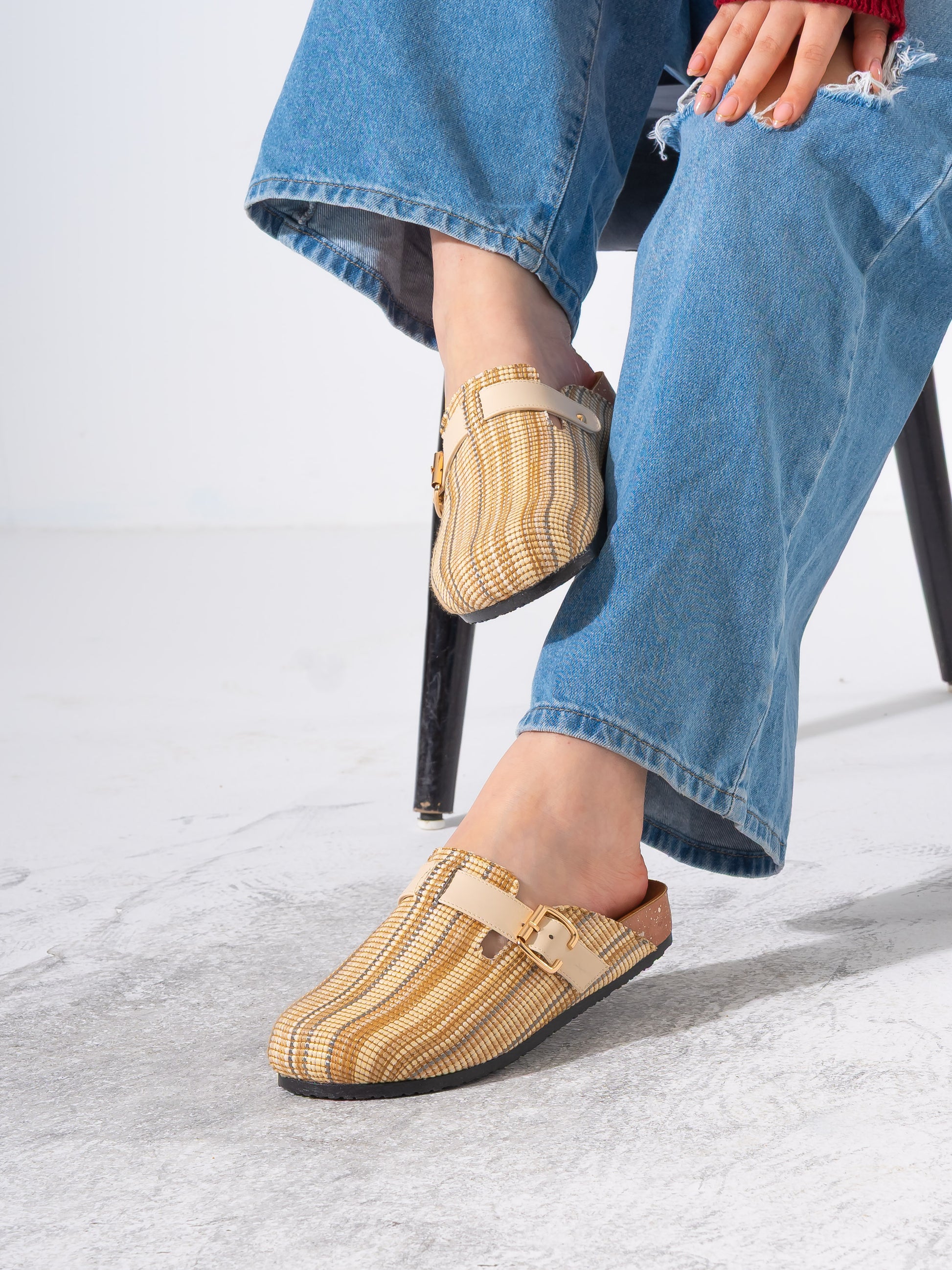 Striped Woven Fabric Buckle Clogs - BEIGE