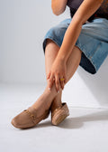 These beige croco-embossed flats combine sophisticated texture with everyday comfort. Crafted to provide a sleek, refined look, they are designed for those who seek elegance without compromising on wearability. The distinctive crocodile pattern adds subtle luxury, making them an excellent choice for both professional and casual settings.