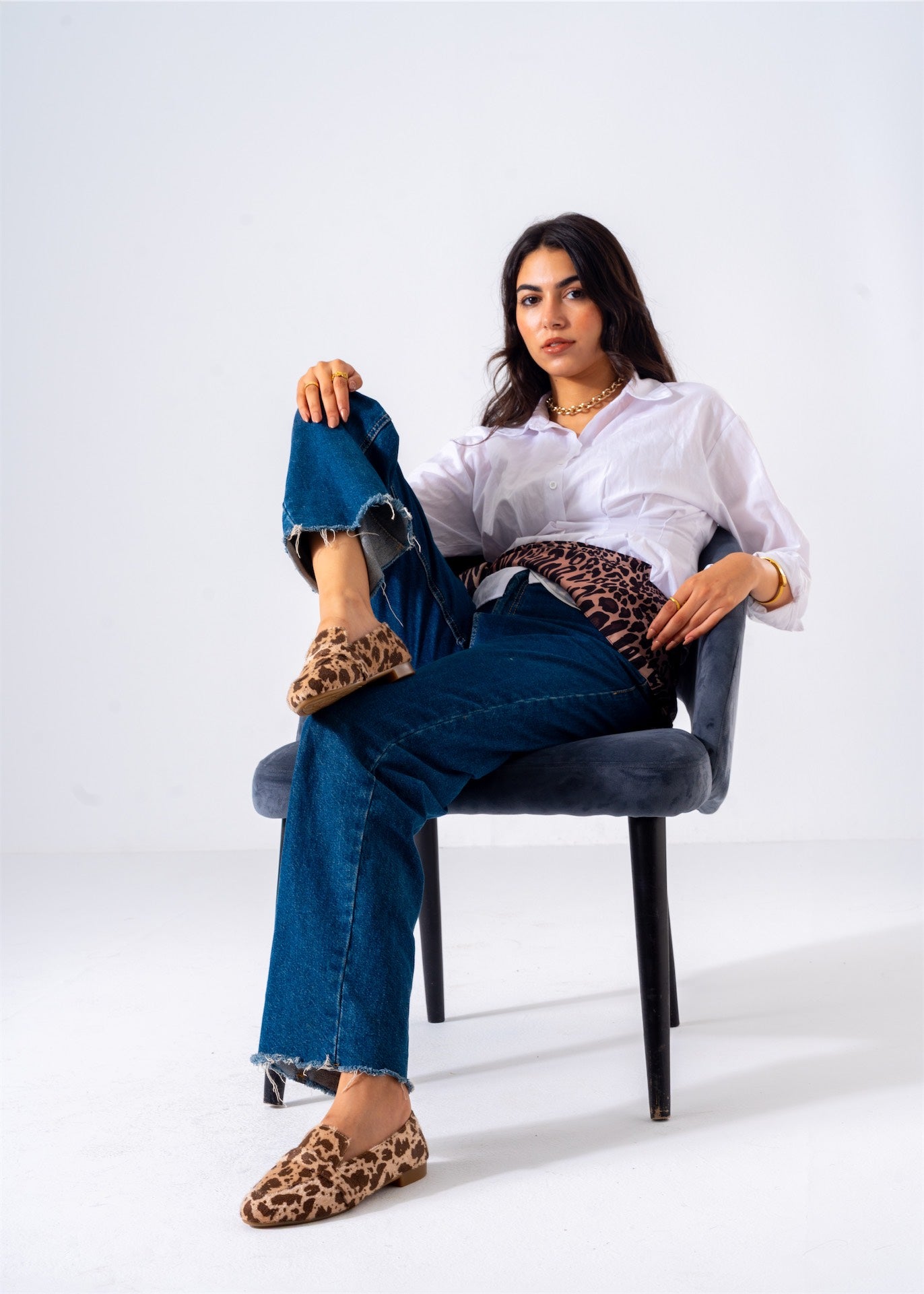 Elevate your style with the Leopard-Print Flat-brown, a sophisticated blend of bold pattern and earthy tones. This flat shoe combines distinctive leopard print with a versatile brown base, making it perfect for both professional and casual settings. Expertly designed for comfort and durability, it offers a stylish yet practical choice for everyday wear.