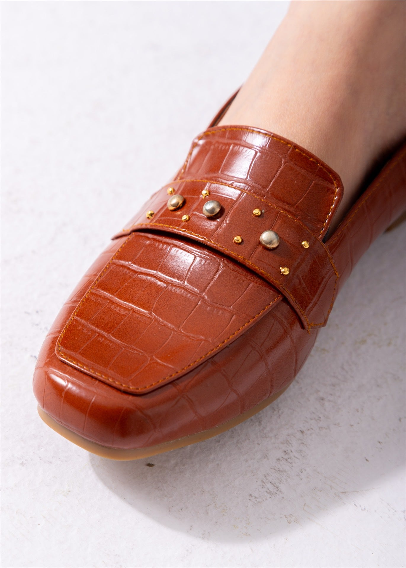 Square Toe Studded Flats-camel
