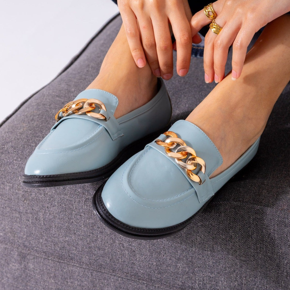 Chunky Chain Loafers-baby blue