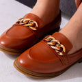 Elevate your footwear collection with these Chunky Chain Loafers, designed to combine contemporary edge with classic loafer comfort. Featuring a bold, oversized chain detail, these shoes offer a distinctive aesthetic that enhances both casual and formal ensembles. Crafted for durability and style, their sturdy sole ensures reliable support, making them an ideal choice for all-day wear. Perfect for those seeking a sophisticated yet fashion-forward statement piece in their wardrobe.