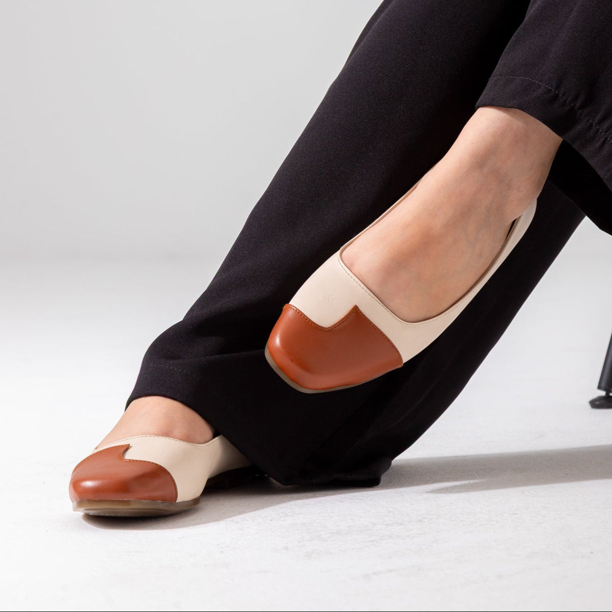 The Contrast Toe Flat-beige