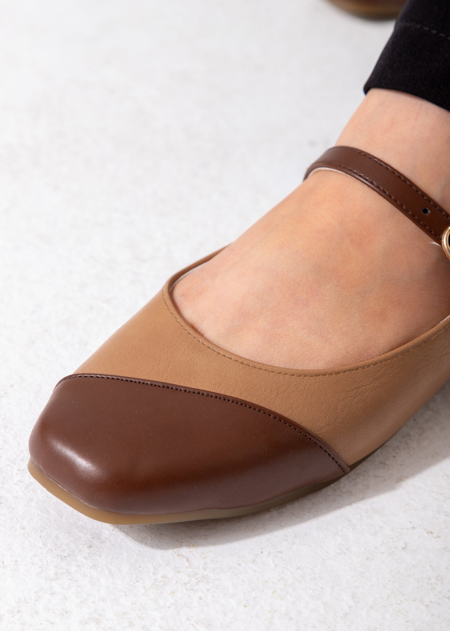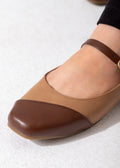 Experience effortless style and comfort with the Two-Tone Strappy Flat-cafe. Designed for all-day wear, this sandal features a sleek two-tone design that complements various outfits. The adjustable straps ensure a secure fit, while the flat sole provides stability and ease for walking. Ideal for casual outings or relaxed workdays, this versatile flat balances fashion and functionality with expert craftsmanship.