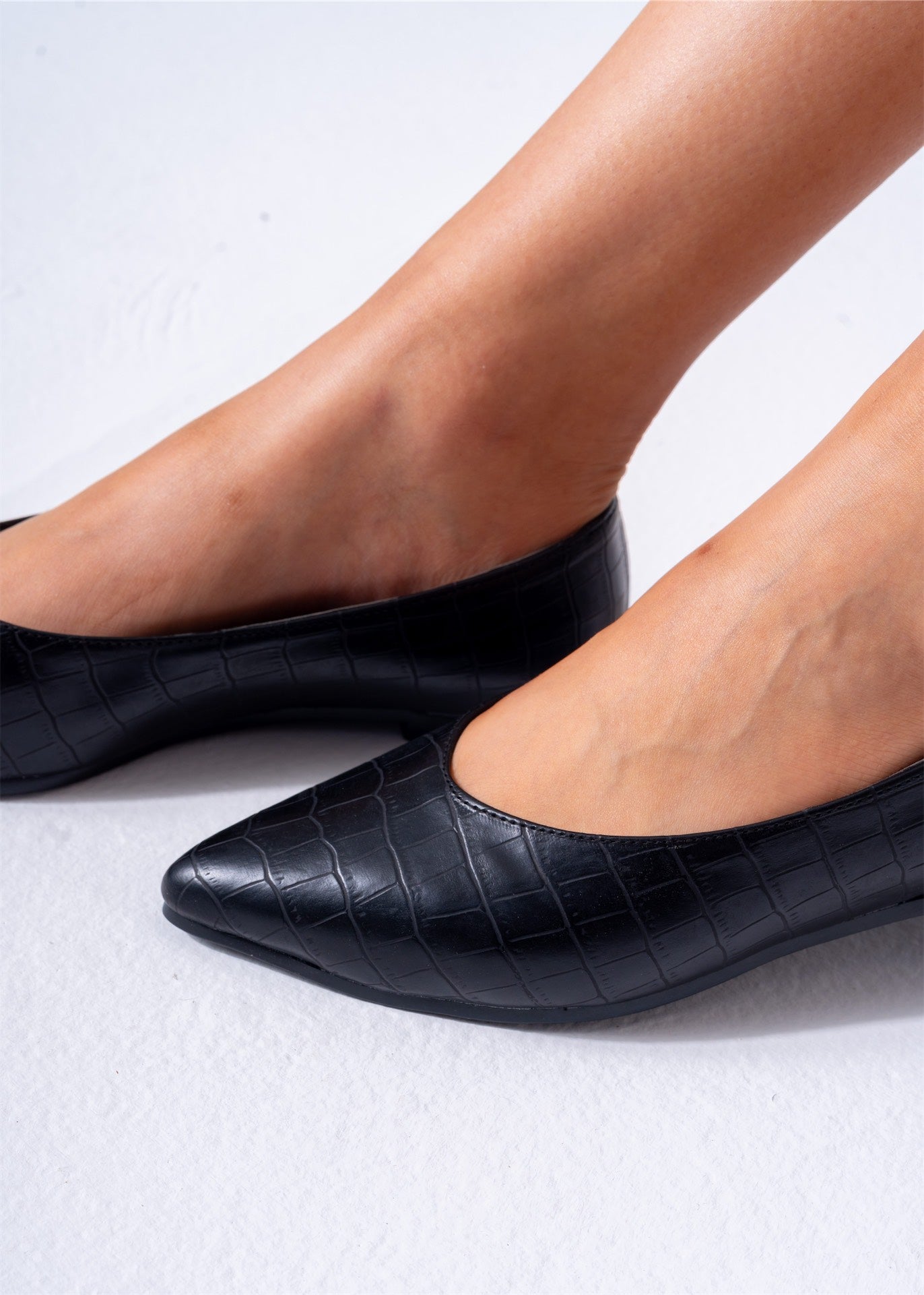 Experience refined sophistication with the Elegance Pointed Ballet Flats in black. Crafted for comfort and style, these flats offer a sleek pointed toe design that enhances your silhouette while providing all-day wearability. Perfect for professional settings or casual outings, they combine timeless elegance with practical support, making them an essential addition to any wardrobe.