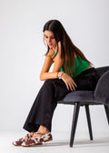 The Daisy-Dot Flat in brown combines classic style with everyday comfort. Its sleek, flat sole offers stable support, making it ideal for all-day wear. The subtle daisy-dot pattern adds a refined visual touch, elevating your look without sacrificing practicality. Perfect for both casual and professional settings, this shoe delivers dependable quality and understated elegance.