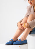 Elevate your footwear collection with the Velvet Touch Chain Loafer in blue. Crafted for refined taste, this loafer combines a smooth velvet finish with a sophisticated chain detail, delivering both comfort and style. Its sleek construction ensures a polished look suitable for professional and formal occasions, while the cushioned insole offers lasting comfort throughout the day. Perfect for those who demand elegance and durability in every step.