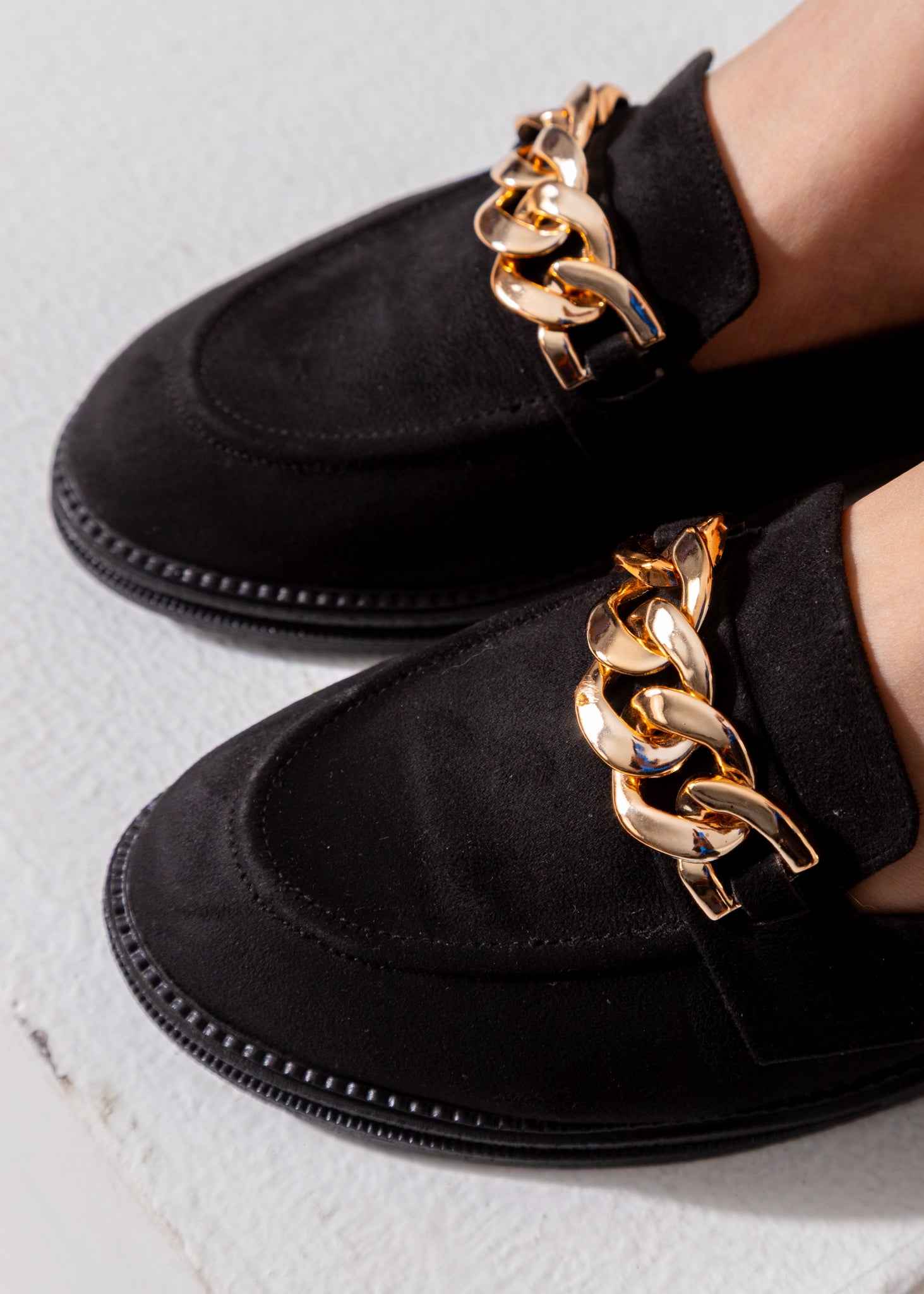 Elevate your footwear collection with the Velvet Touch Chain Loafer in black. Crafted with a smooth velvet finish, this loafer combines classic design and modern sophistication. The distinctive chain detail adds a refined edge, making it perfect for both professional settings and elegant casual wear. Designed for comfort and style, it offers a sleek silhouette that enhances any outfit. Ideal for those who appreciate quality craftsmanship and timeless appeal.