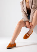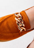 These Velvet Touch Chain Loafers in camel combine refined style with comfort. Crafted with a soft velvet finish, they offer a luxurious feel while the classic chain detail adds a sophisticated edge. Designed for easy slip-on wear, these loafers provide both elegance and practicality, making them an ideal choice for polished casual or smart occasions.