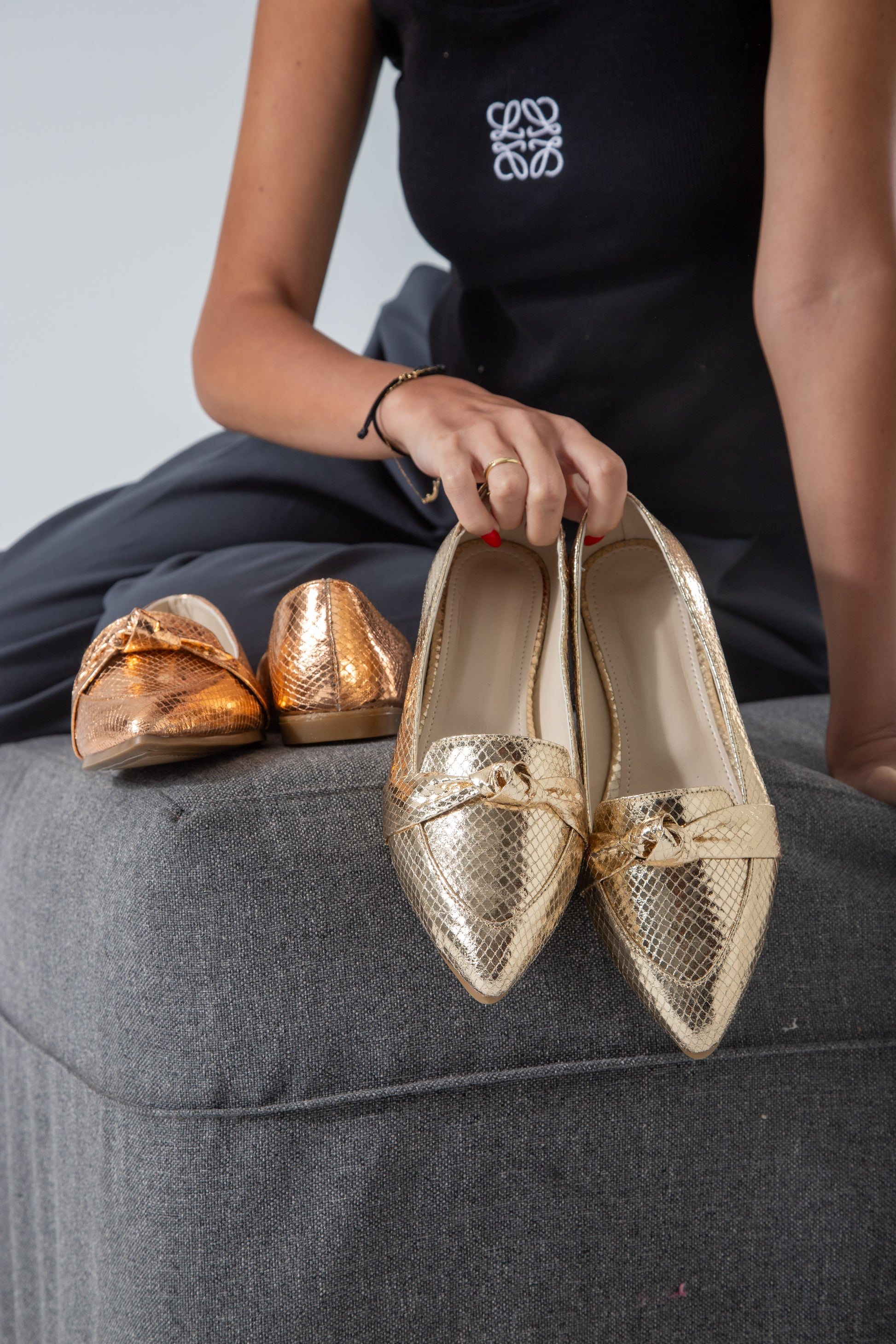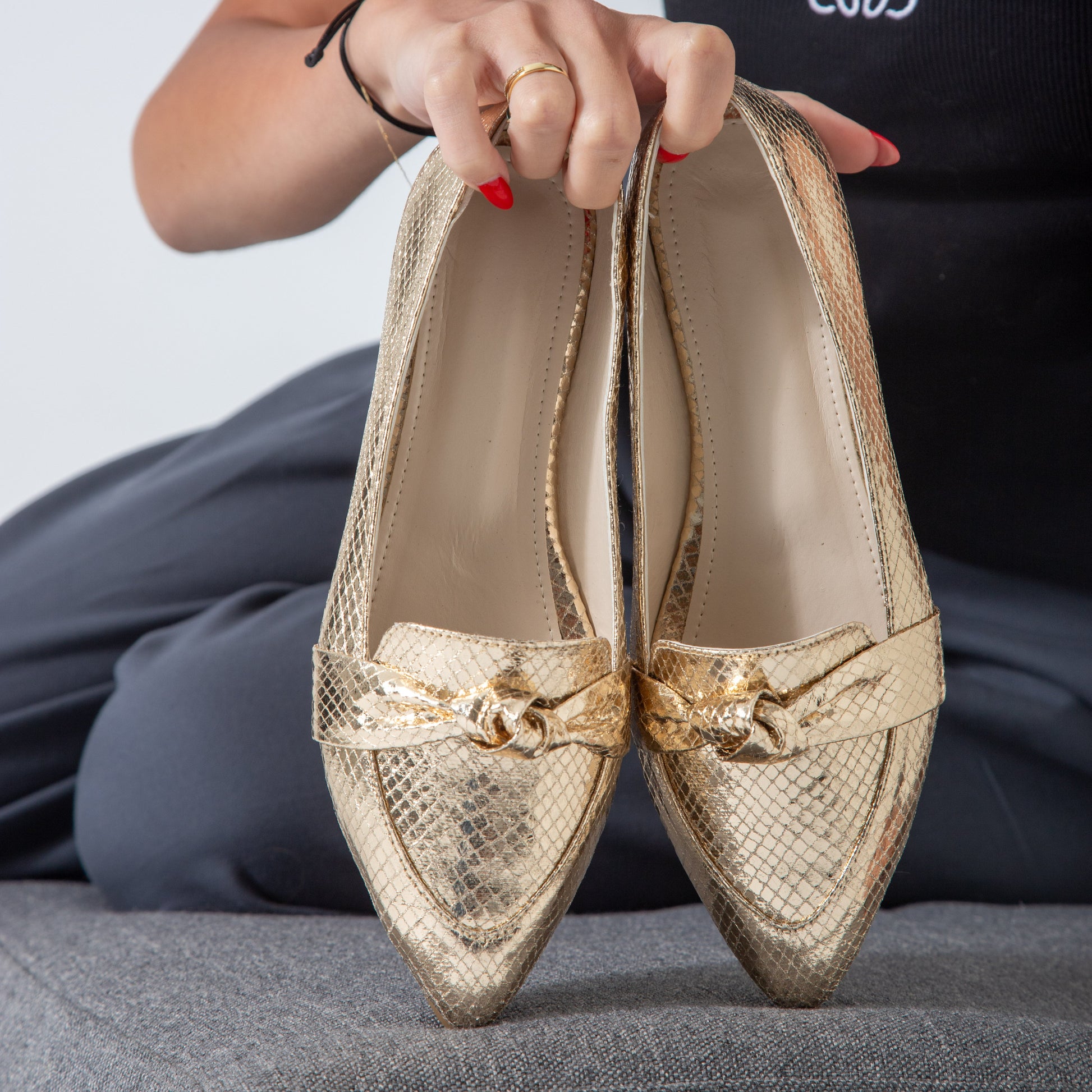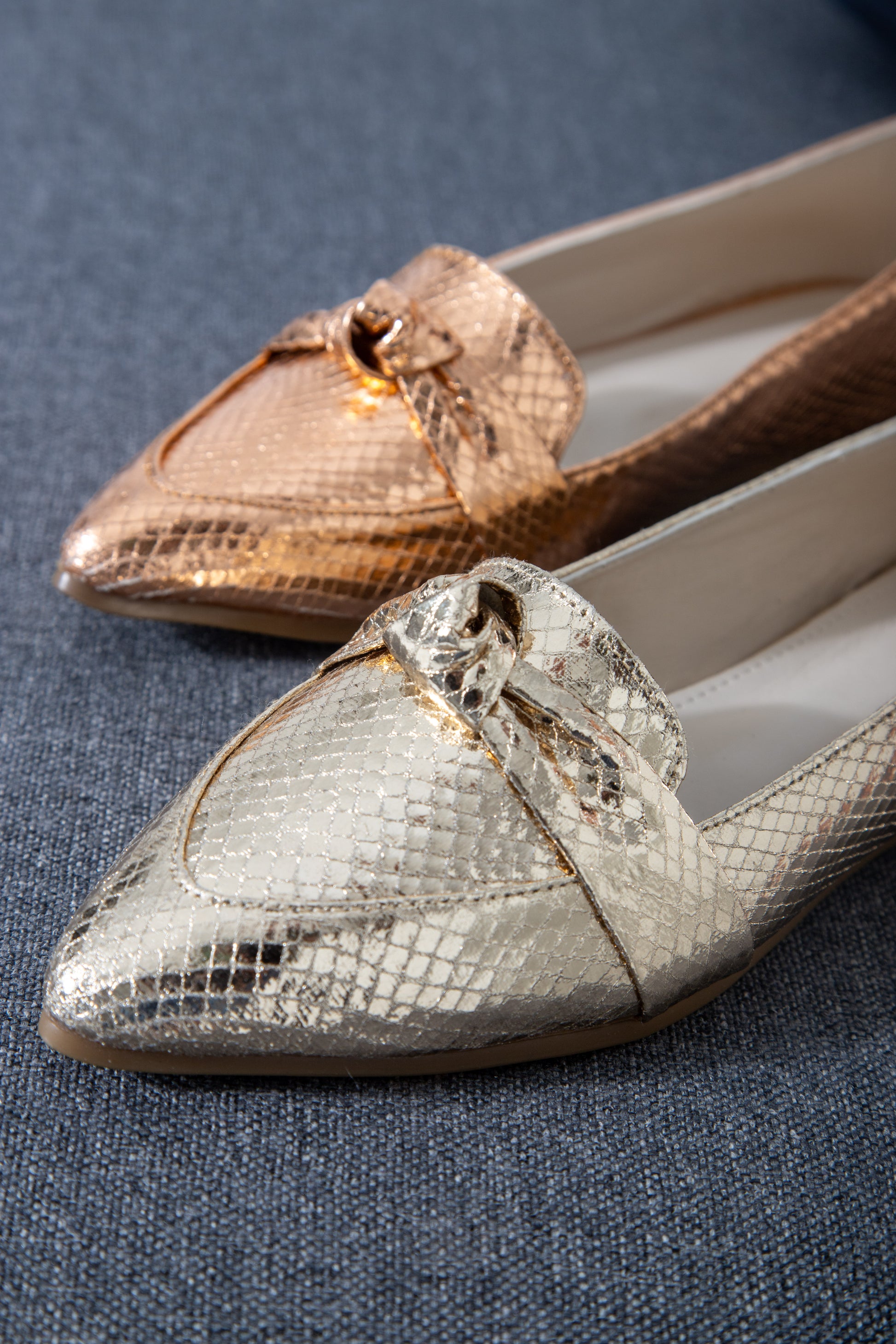 Metallic Snake Flats combine sleek design with subtle shimmer, crafted to elevate your footwear collection. These flats offer a textured metallic finish inspired by snake patterns, adding a sophisticated edge to both casual and formal outfits. Lightweight and comfortable, they provide effortless style without compromising on support, making them ideal for all-day wear. Perfect for those seeking a refined yet distinctive look.