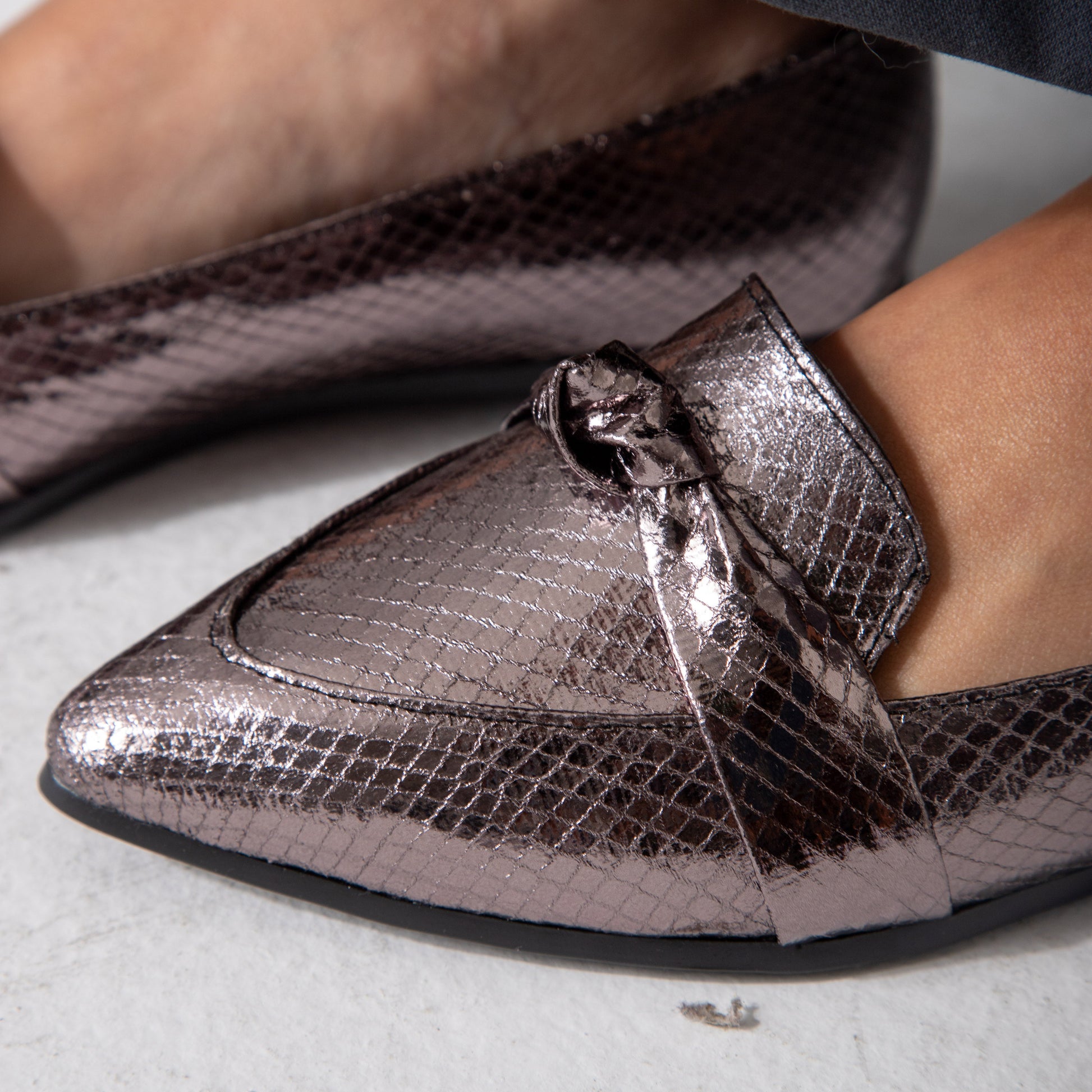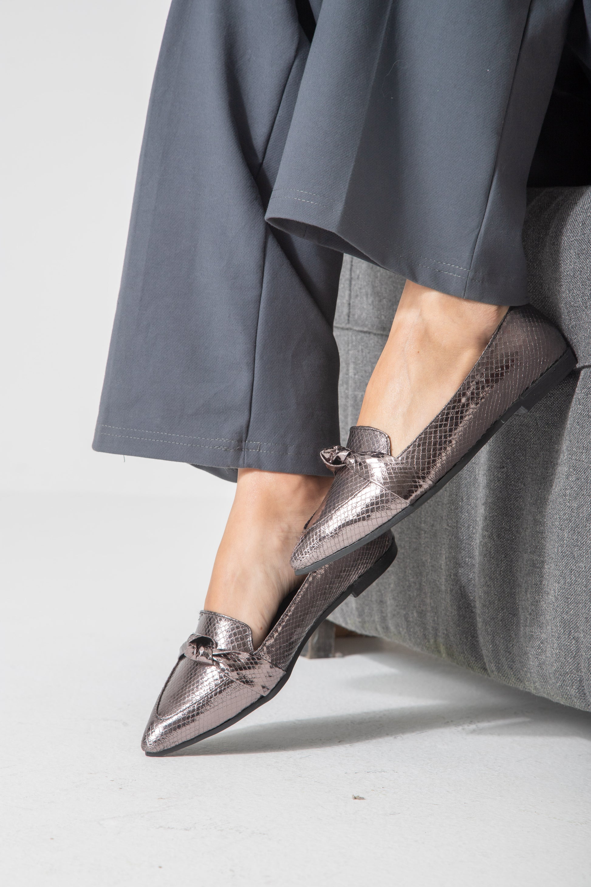 Metallic Snake Flats combine sleek design with subtle shimmer, crafted to elevate your footwear collection. These flats offer a textured metallic finish inspired by snake patterns, adding a sophisticated edge to both casual and formal outfits. Lightweight and comfortable, they provide effortless style without compromising on support, making them ideal for all-day wear. Perfect for those seeking a refined yet distinctive look.