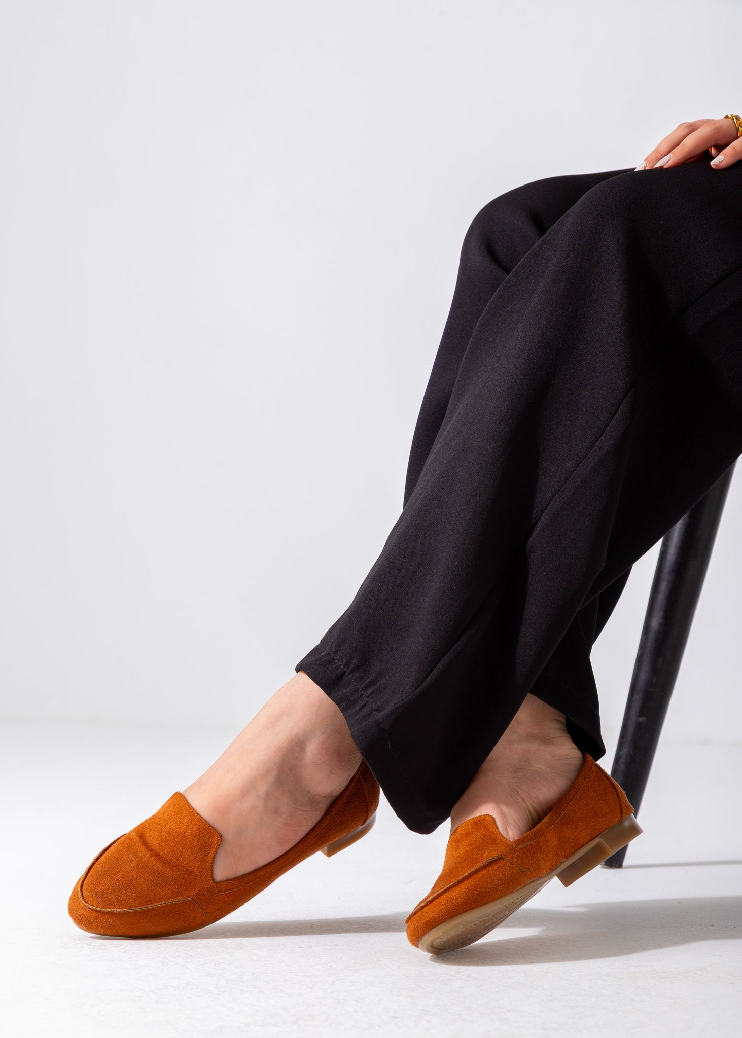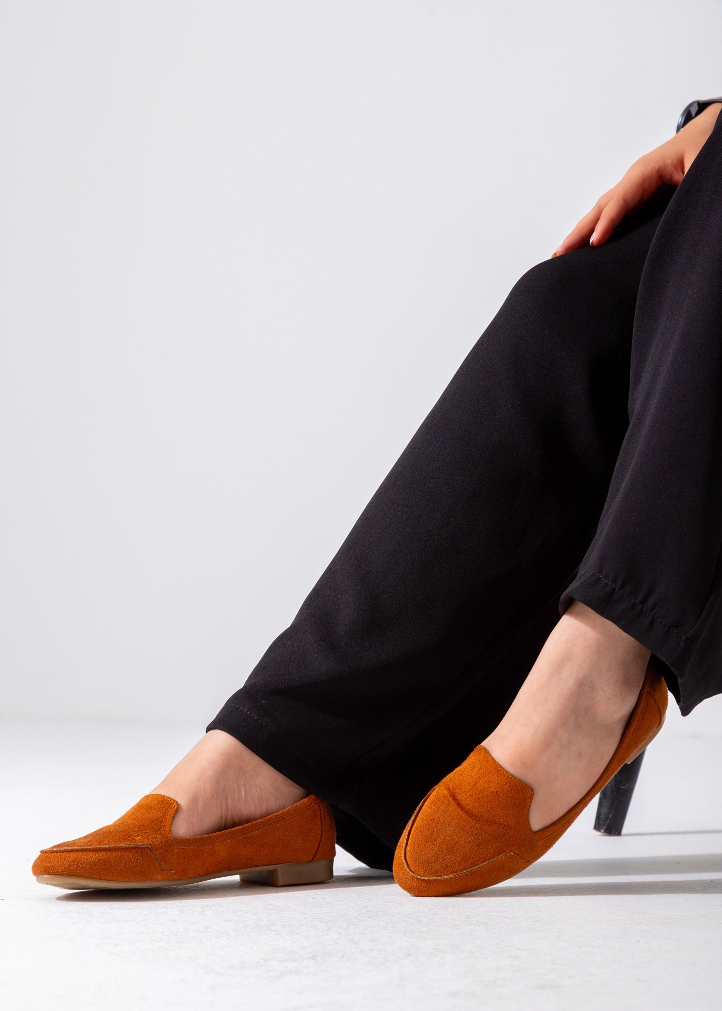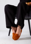 These Suede Classic Slip-On Flats in camel offer timeless style combined with soft, supple suede for lasting comfort. The easy slip-on design ensures a secure fit while providing versatility for both casual and polished looks. Durable soles support everyday wear, making them a reliable choice for sophisticated simplicity.