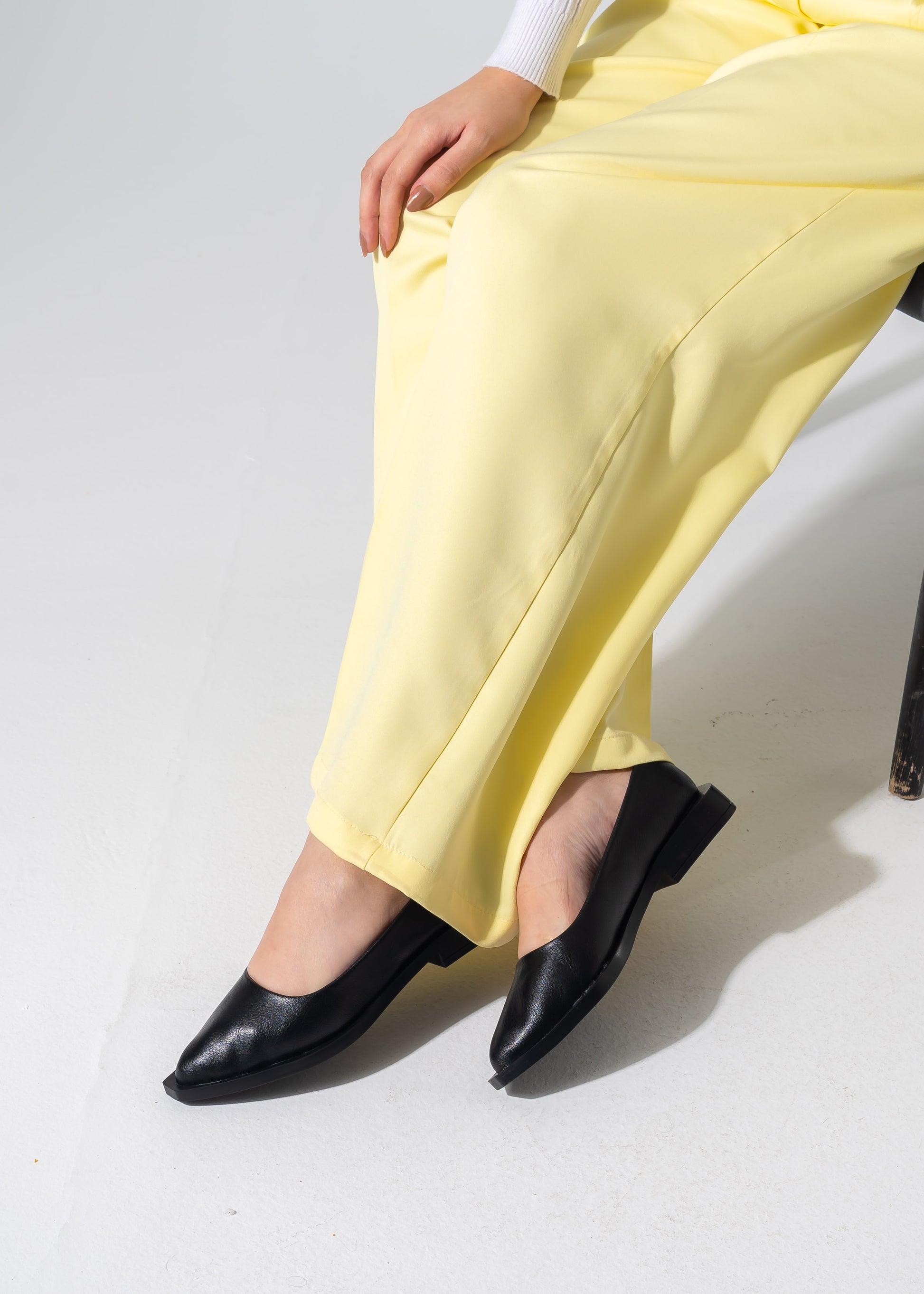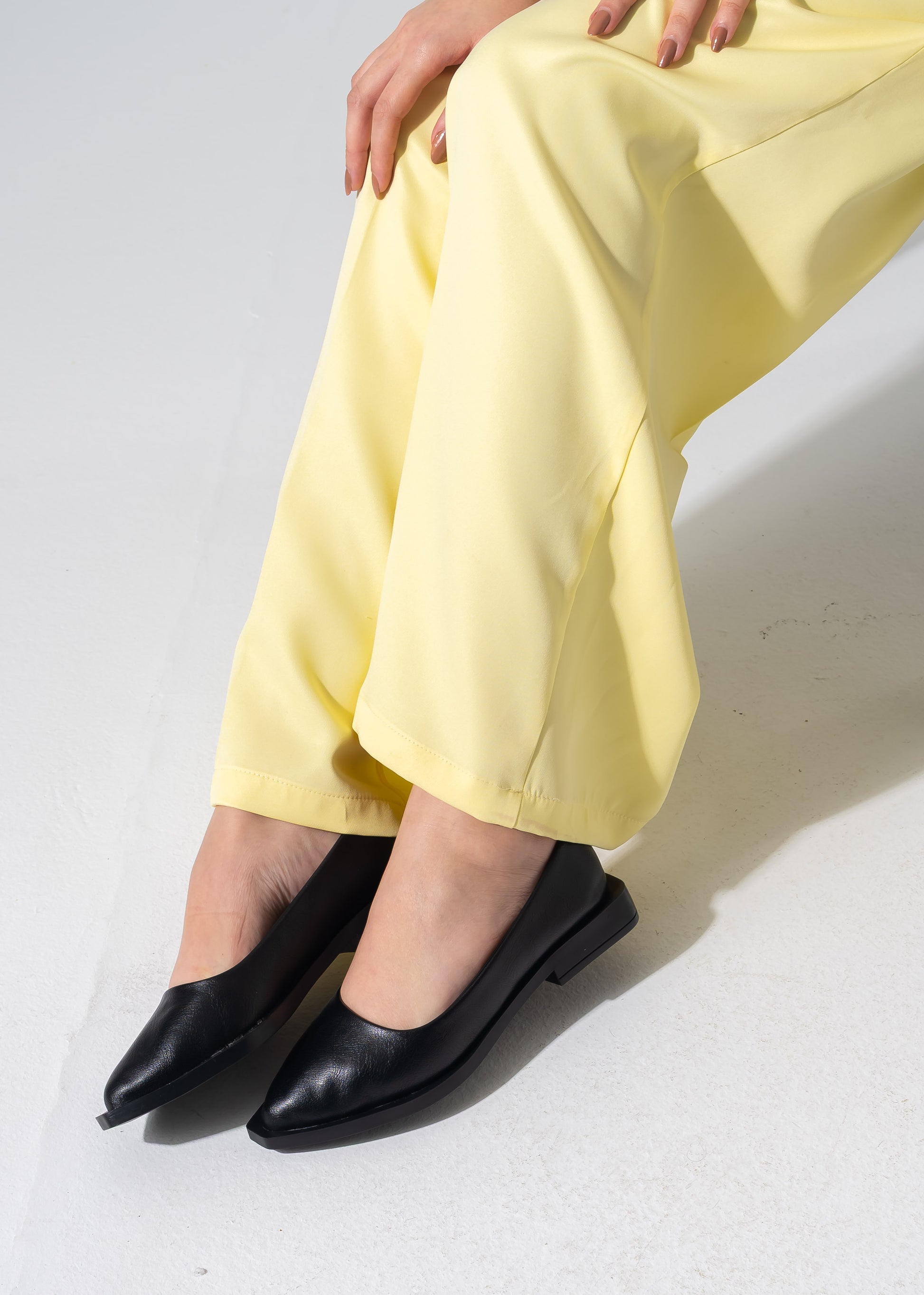 Sleek Pointed-Toe Flats - BLACK