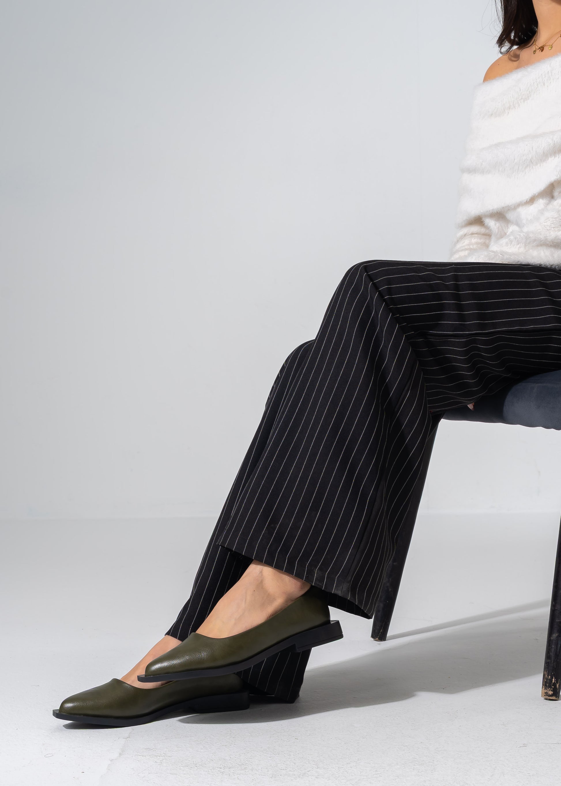 Sleek Pointed-Toe Flats - OLIVE