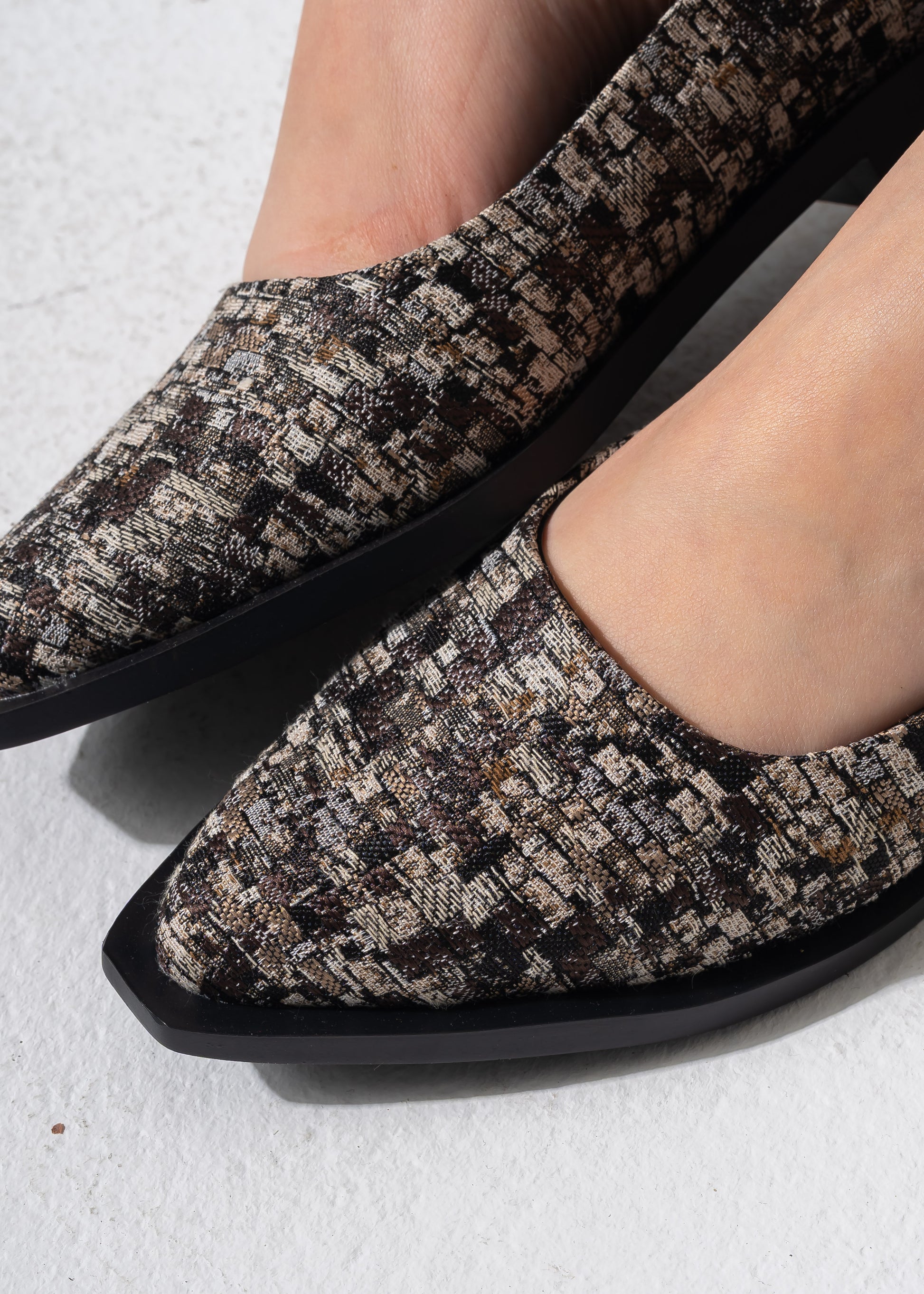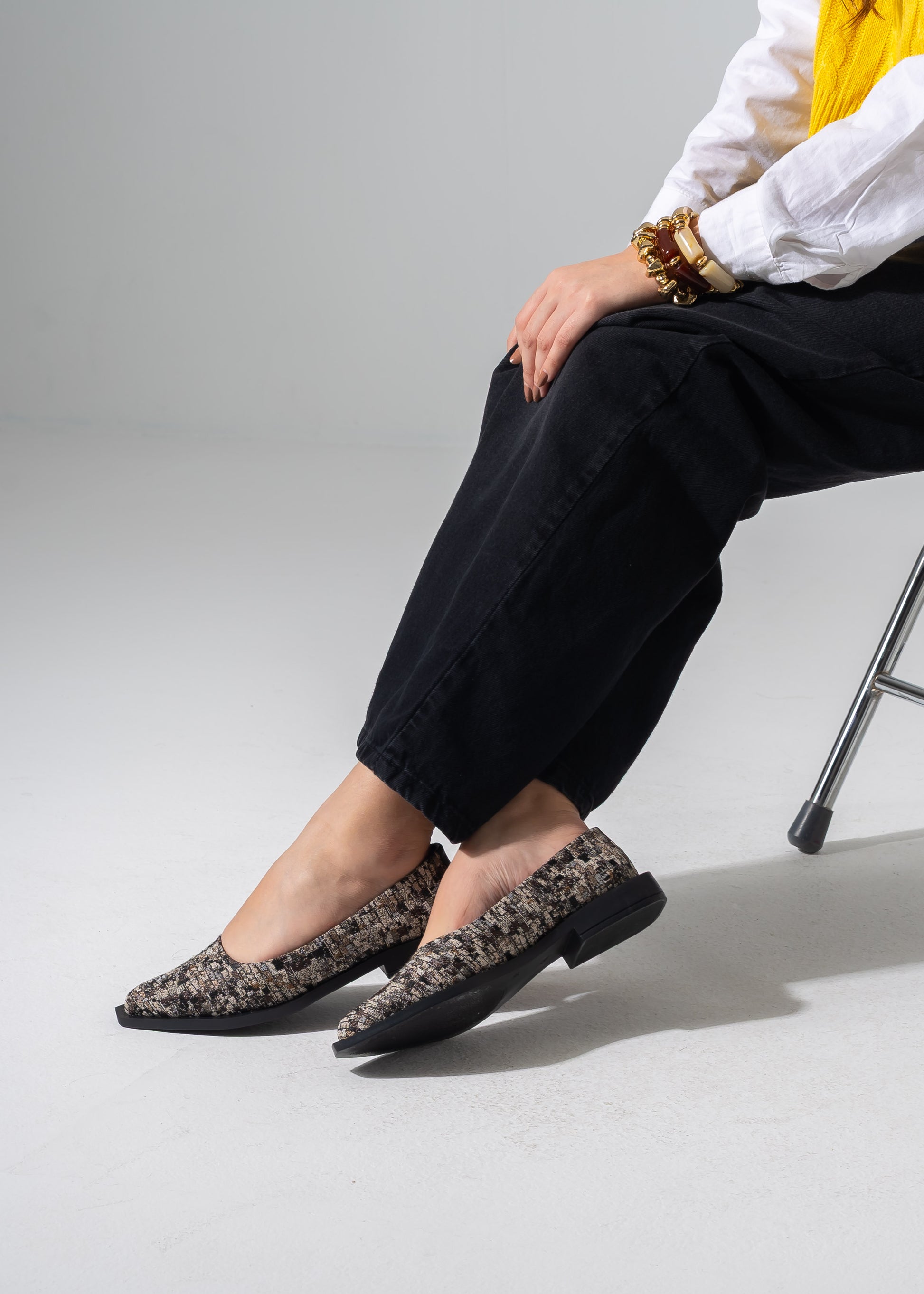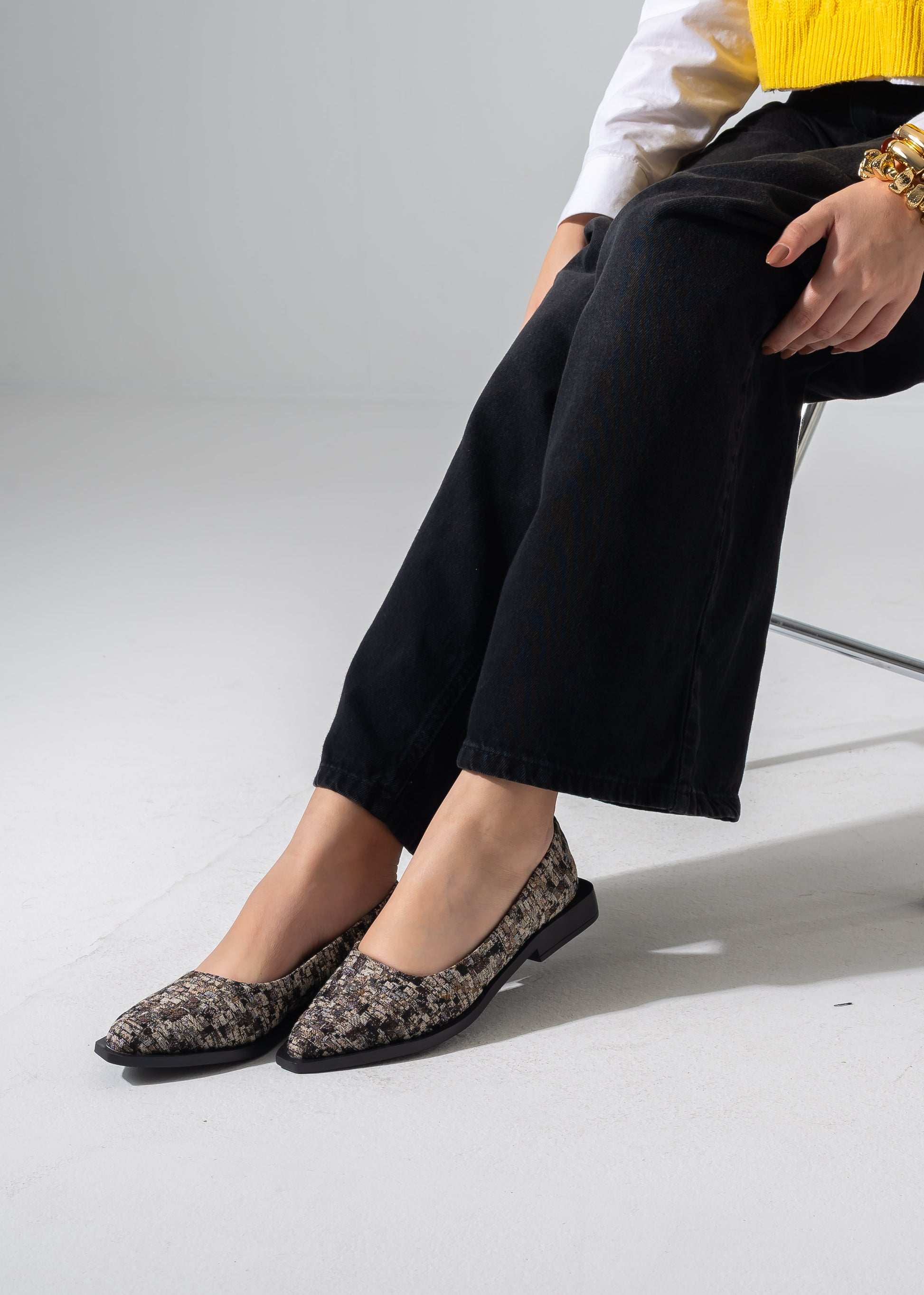 Elevate your everyday look with these sophisticated pointed-toe flats. Featuring a premium tweed texture and a sleek structured sole, they offer the perfect blend of modern edge and timeless elegance.