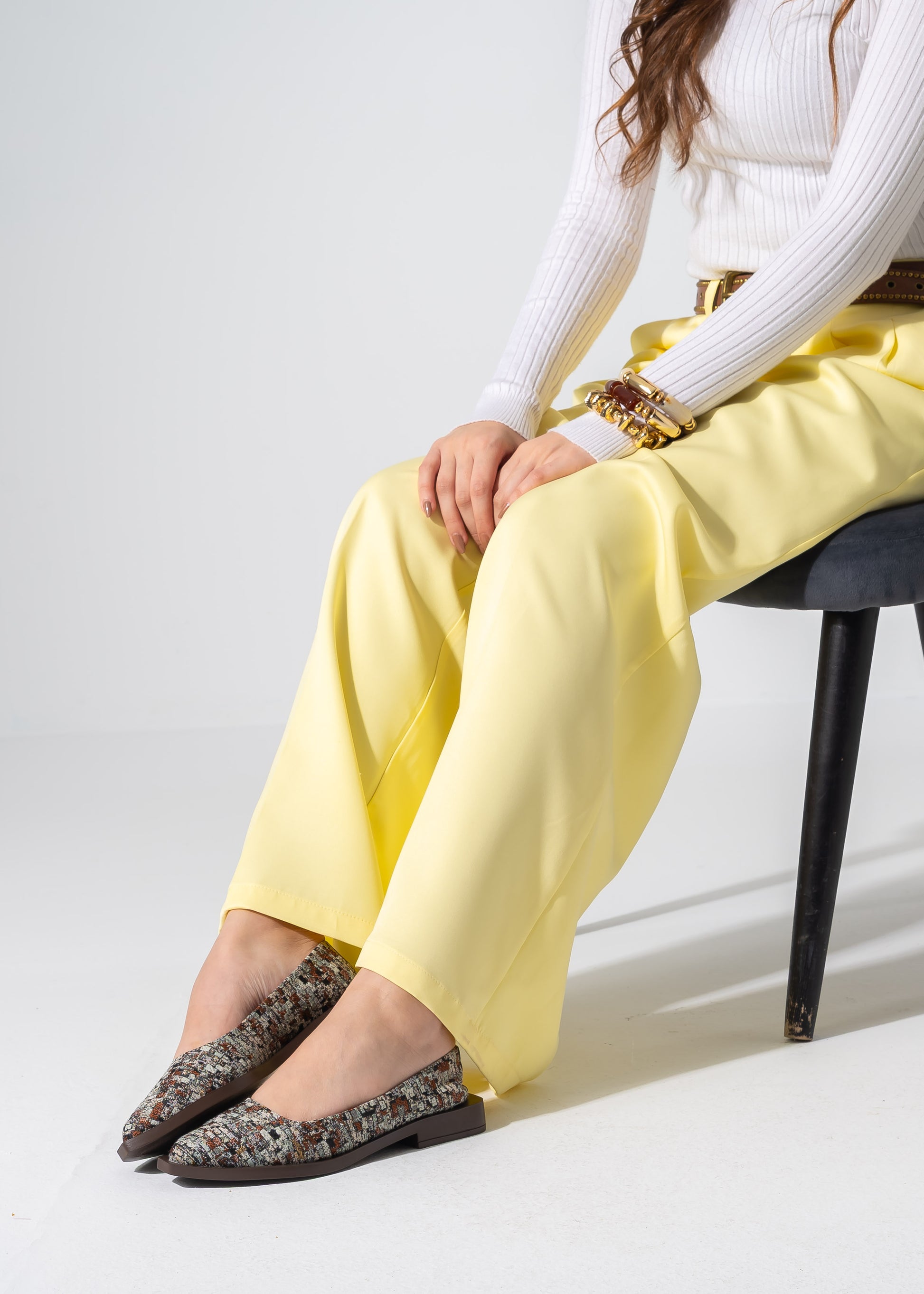 Elevate your everyday look with these sophisticated pointed-toe flats. Featuring a premium tweed texture and a sleek structured sole, they offer the perfect blend of modern edge and timeless elegance.