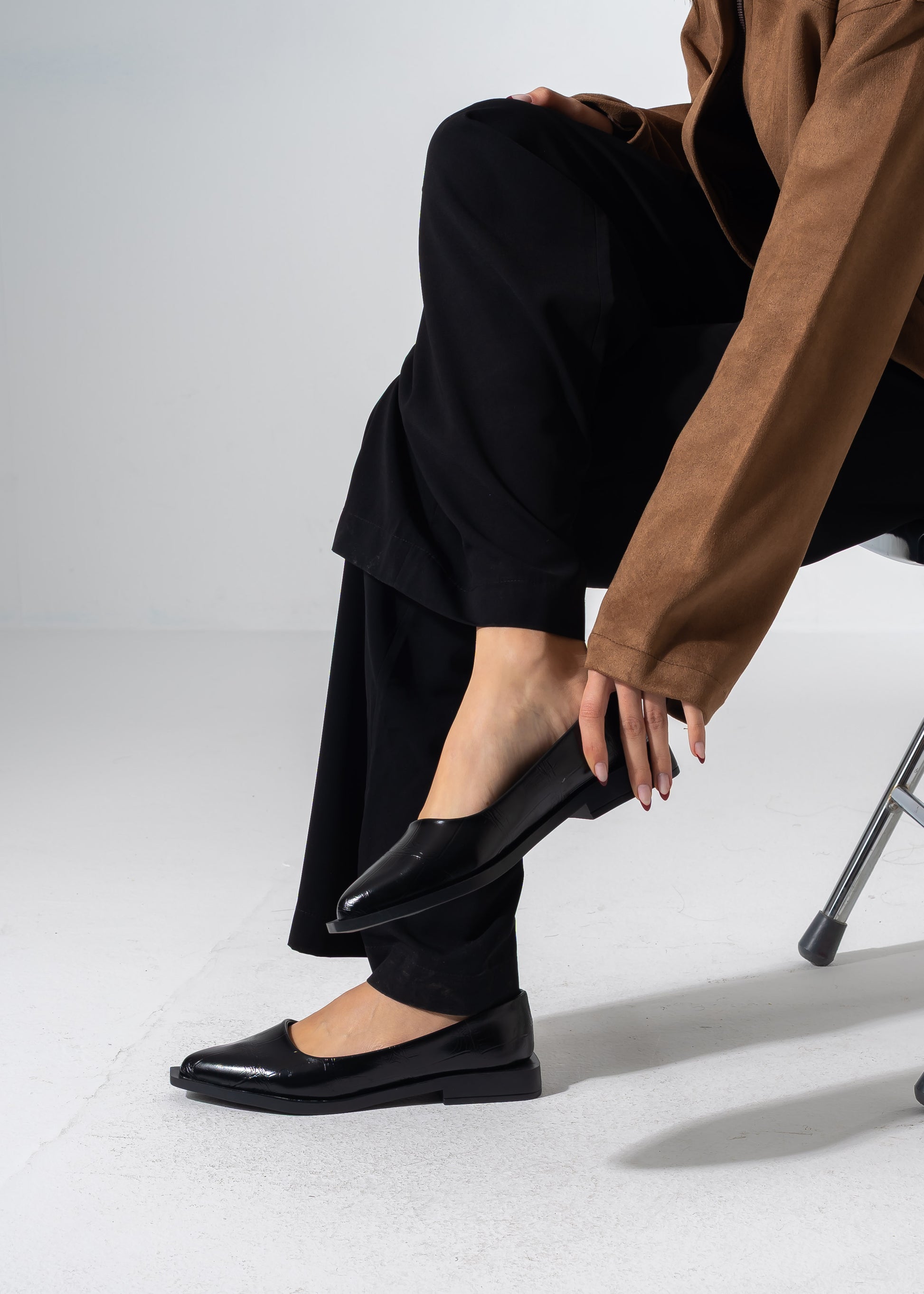Elevate your everyday style with these modern pointed-toe flats. Featuring a distinctive architectural sole and available in premium textures—from sophisticated croc-embossed leather to vibrant geometric weaves. Designed for the woman who loves bold, contemporary details