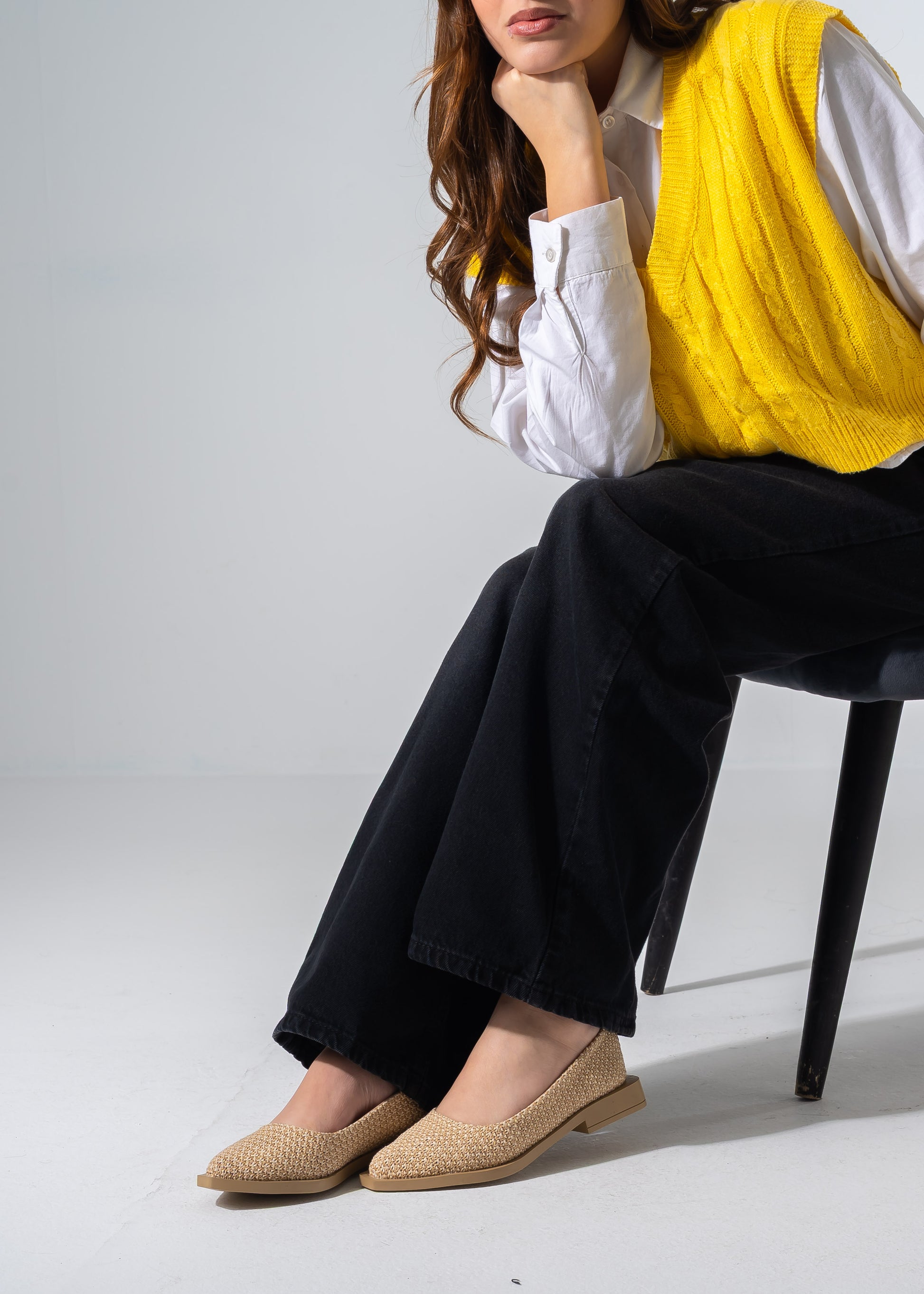 Crafted with a unique straw-like texture, these flats offer a sophisticated, earthy vibe that pairs perfectly with warm-weather outfits. The sharp pointed-toe design and structured sole blend rustic charm with modern fashion
