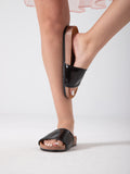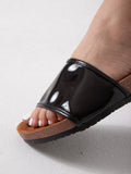 The Glossy Day Slide in black is the perfect addition to your footwear collection. Its sleek and glossy design offers a stylish touch while the durable material provides long-lasting comfort. With its versatile look, you can easily pair it with any outfit for a polished and confident look.