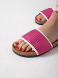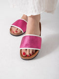 This Linear Luxe Slide offers a sleek and stylish design in a vibrant pink color. The single feature of this slide allows for easy slip-on and a comfortable fit for all day wear. Perfect for adding a pop of color and luxury to any outfit.