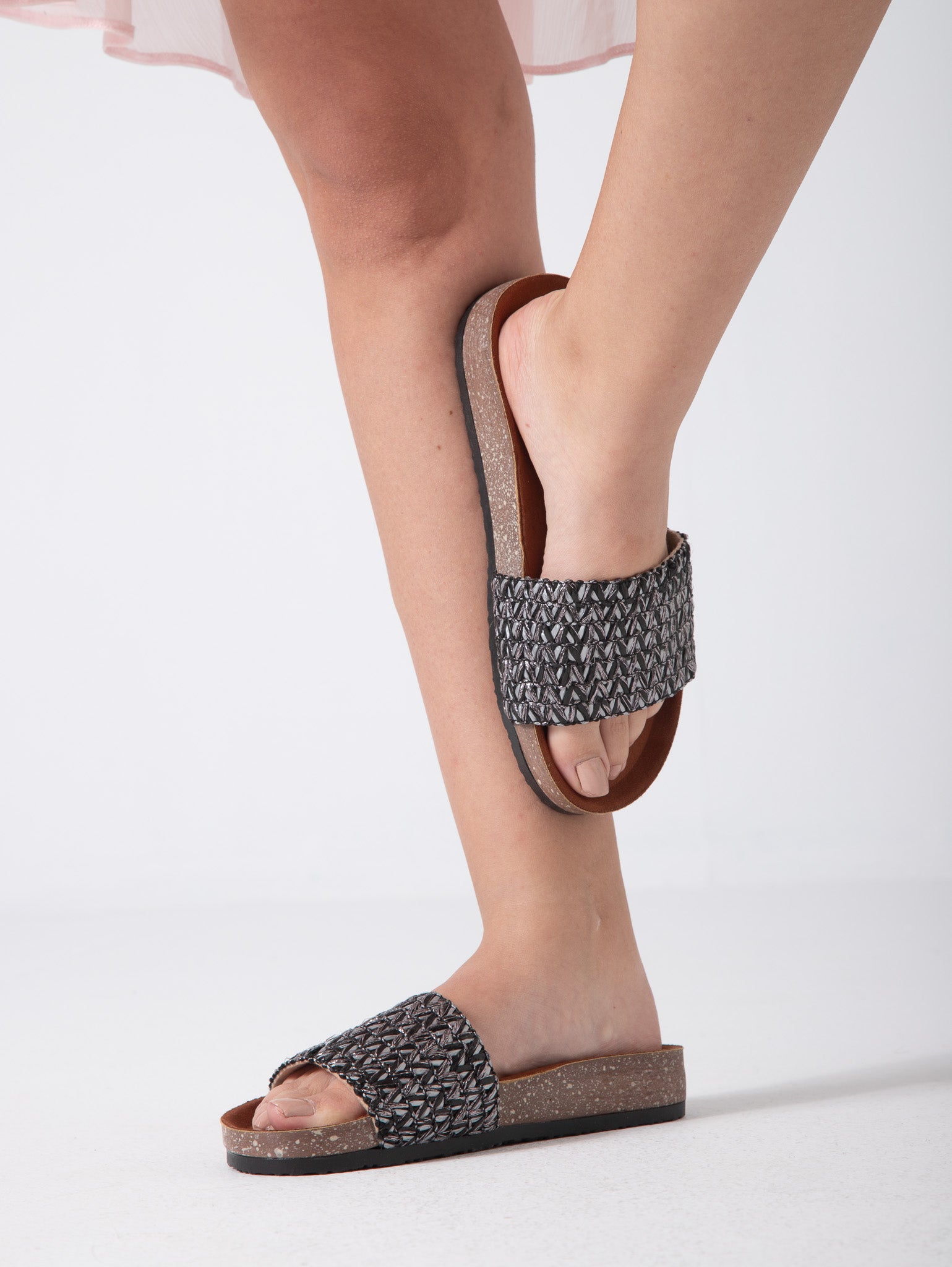 The Lustro Weave Slide in black offers a sleek and elegant design with its intricate weave detail. Made with high-quality materials, these slides provide superior comfort and support. Elevate your style and confidence with these expertly crafted slides.