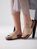 Introducing the Luxe Line Slides in beige. Crafted with high-quality materials, these slides offer the perfect blend of style and comfort. The luxe design is perfect for any occasion, making them a must-have for your wardrobe. Upgrade your shoe game with these stylish and versatile slides.