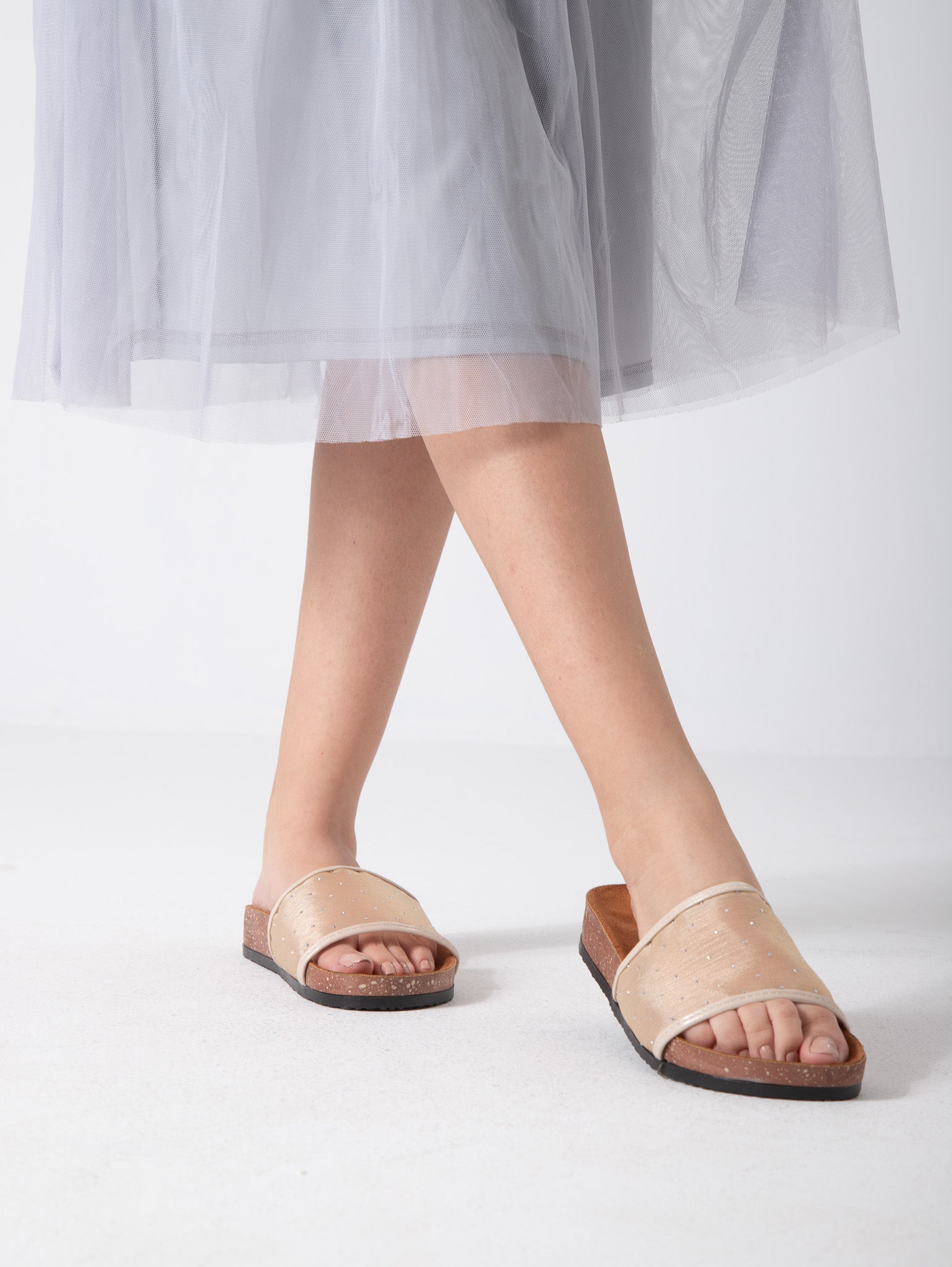 The Moonlight Dust Mules have a sleek and sophisticated beige color, adding a touch of elegance to any outfit. The 1-inch heel provides comfortable support, making them perfect for all-day wear. These mules are a must-have for those seeking both style and comfort.