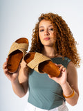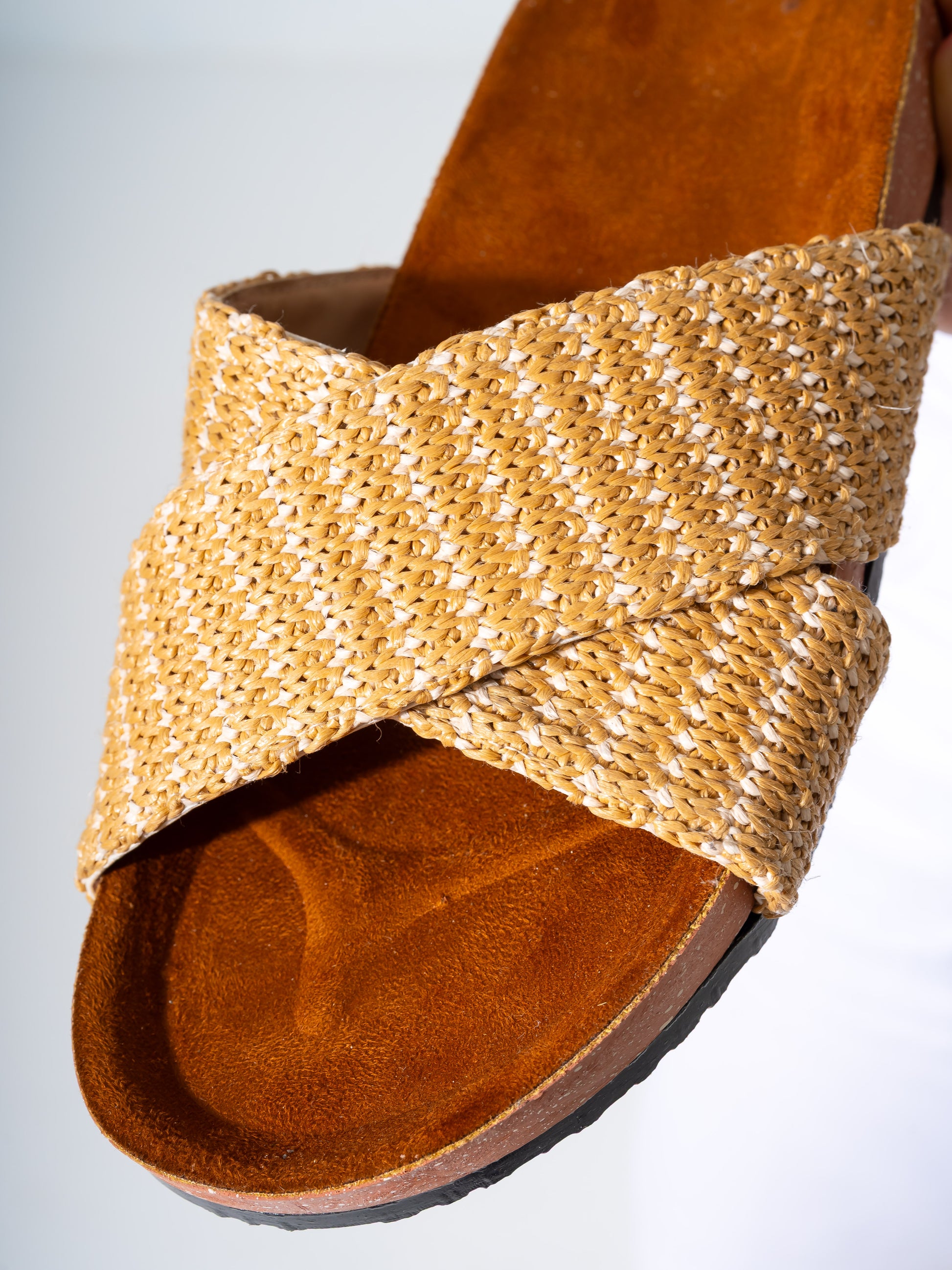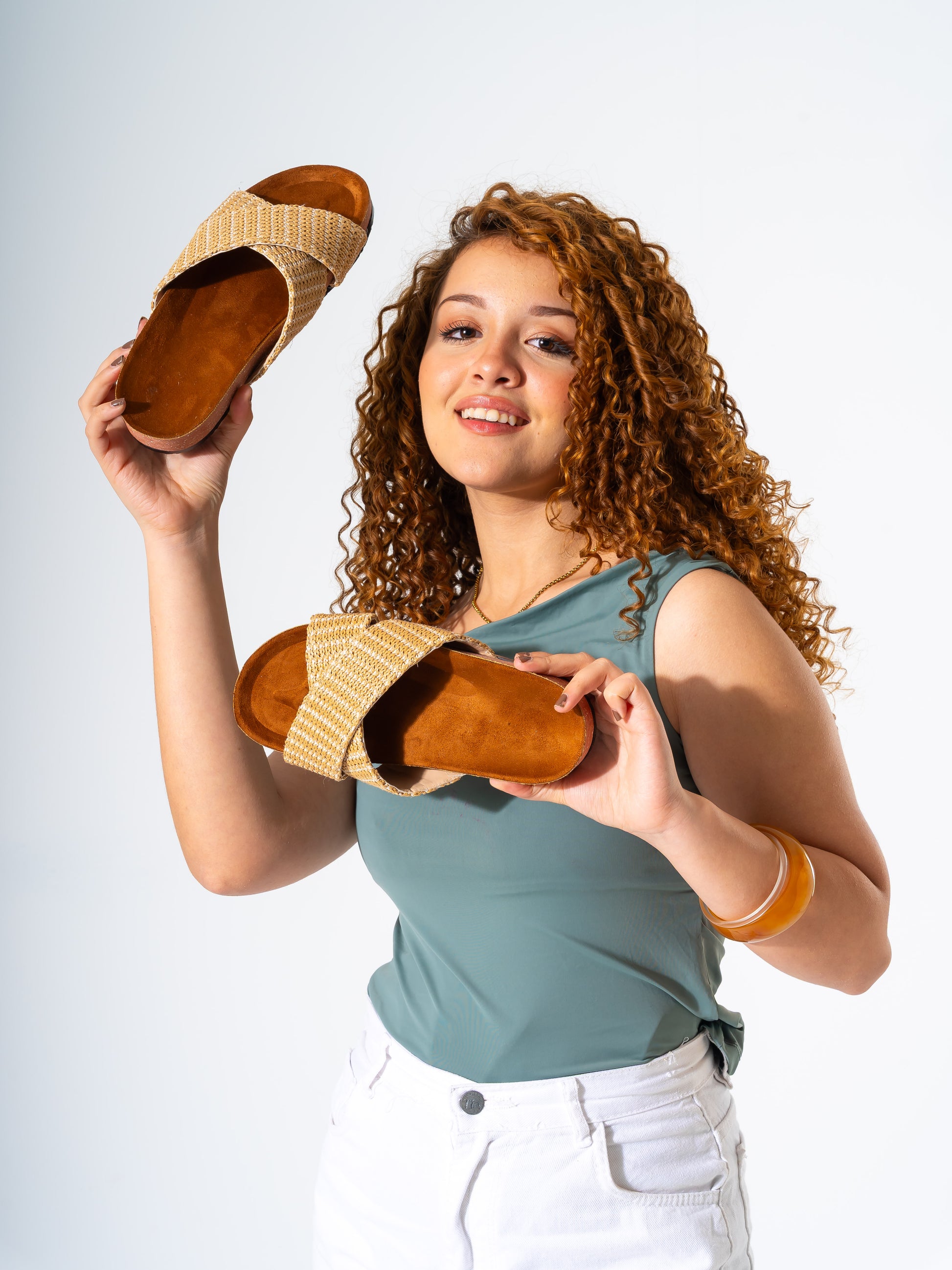 Step into effortless style with these chic cross-strap slides. Featuring a beautifully textured woven upper and an ergonomically contoured footbed, these sandals offer the perfect blend of artisanal charm and all-day comfort. Designed with a durable grip sole, they are your go-to choice for beach days or casual city strolls