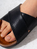 Elevate your casual look with these sophisticated cross-strap slides featuring a high-quality snakeskin embossed finish. Designed with both style and comfort in mind, they feature a contoured footbed that supports your feet and a textured upper that adds an exotic touch to any outfit. Perfect for effortless daily wear with a bold, trendy edge