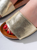 Elevate your casual look with these stylish slides featuring a textured, scale-effect upper. Designed with a wide single strap for a secure fit and a contoured ergonomic footbed for all-day comfort. The durable outsole provides excellent grip, making them perfect for beach days or city strolls. A versatile piece that adds a touch of shimmer and texture to any outfit