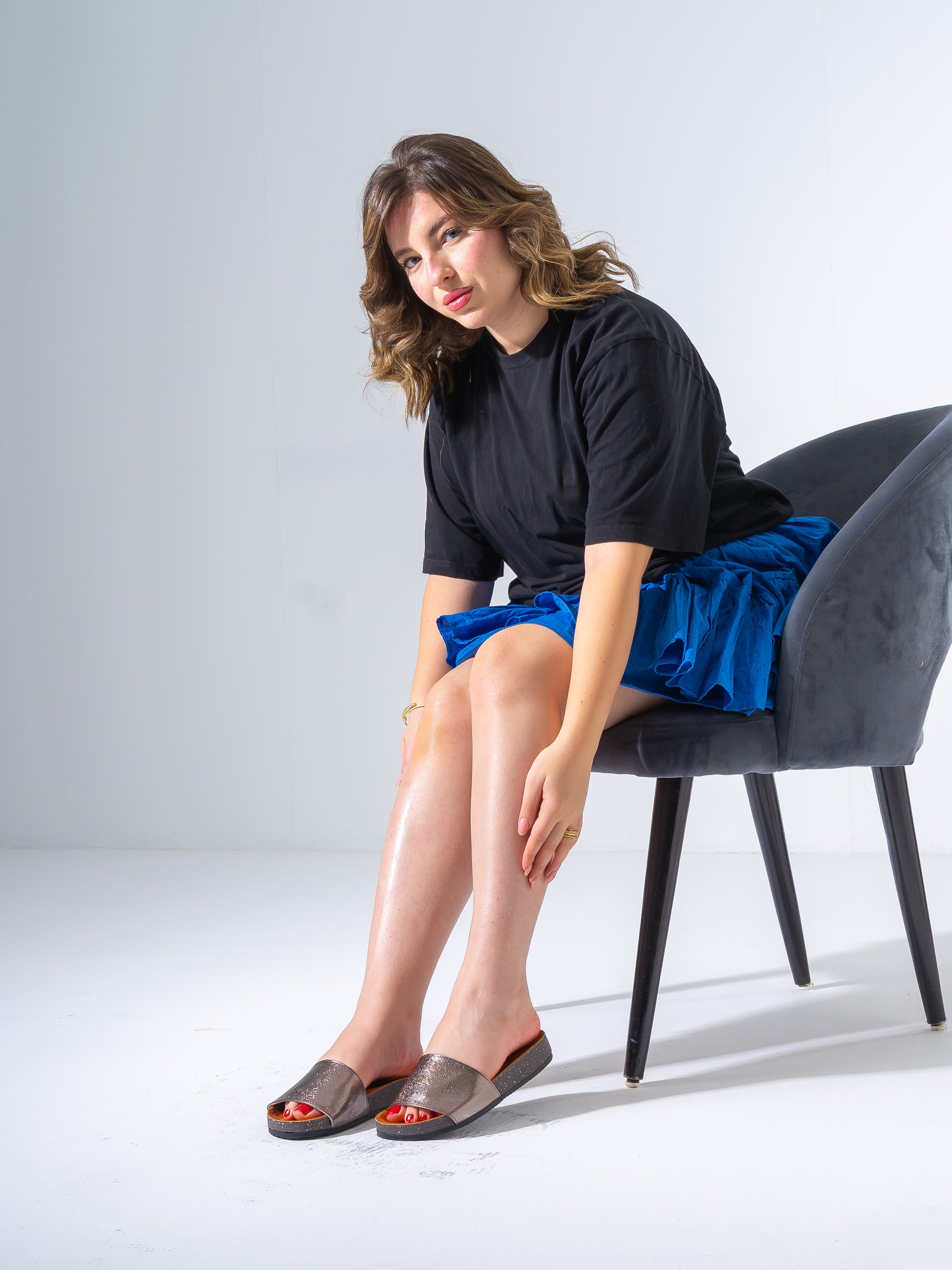 Elevate your casual look with these stylish slides featuring a textured, scale-effect upper. Designed with a wide single strap for a secure fit and a contoured ergonomic footbed for all-day comfort. The durable outsole provides excellent grip, making them perfect for beach days or city strolls. A versatile piece that adds a touch of shimmer and texture to any outfit