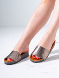 Snake-Textured Wide Strap Slides - OXIDI