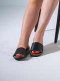 Chic Scaled Open-Toe Mules - BLACK