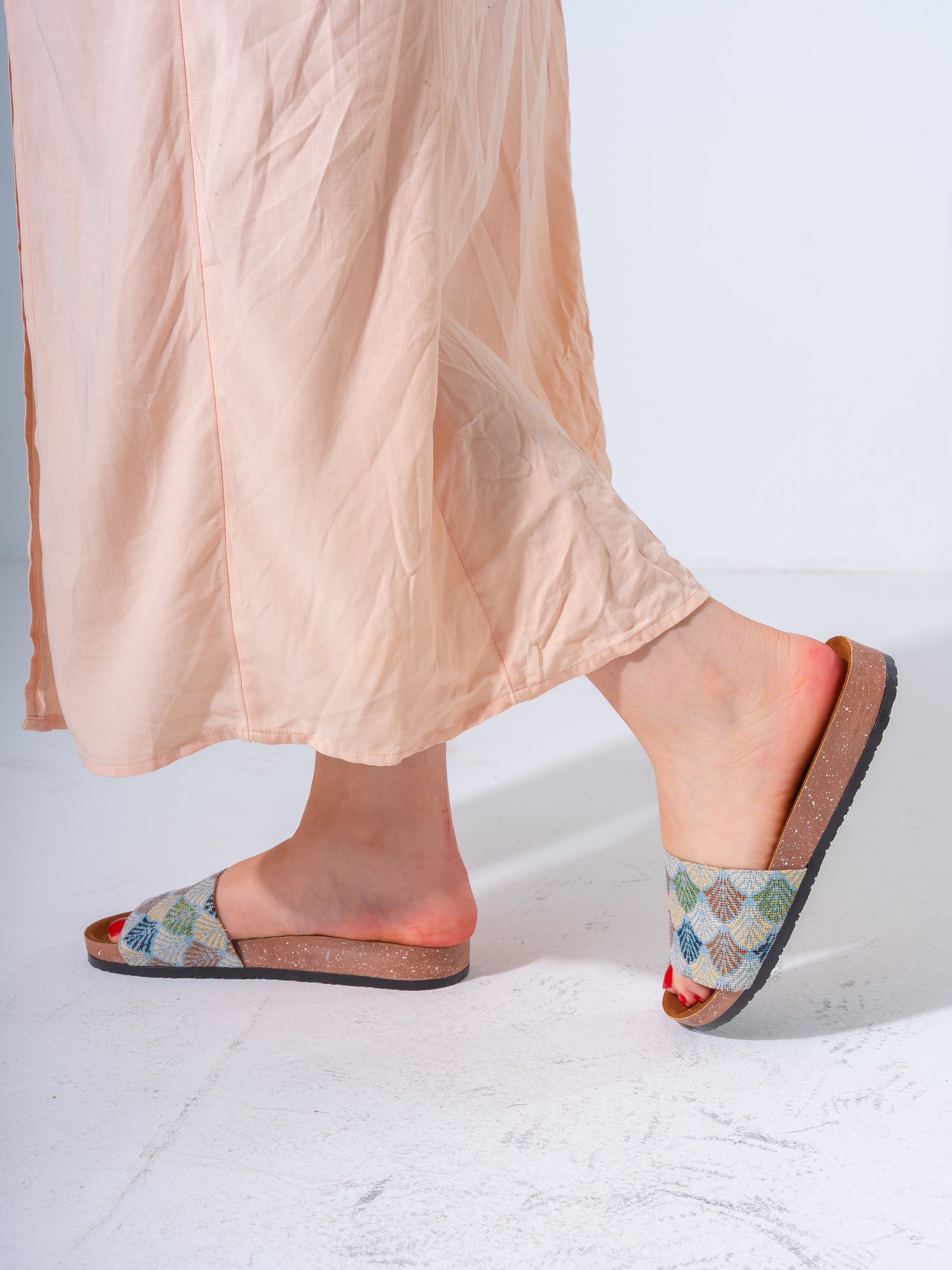 Elevate your casual look with these stylish woven slides. Featuring a high-quality textile upper with an intricate geometric pattern, these slippers offer a blend of artisanal charm and modern comfort. The contoured footbed is designed for all-day support, while the durable sole ensures a steady grip. Perfect for adding a touch of texture and personality to any outfit