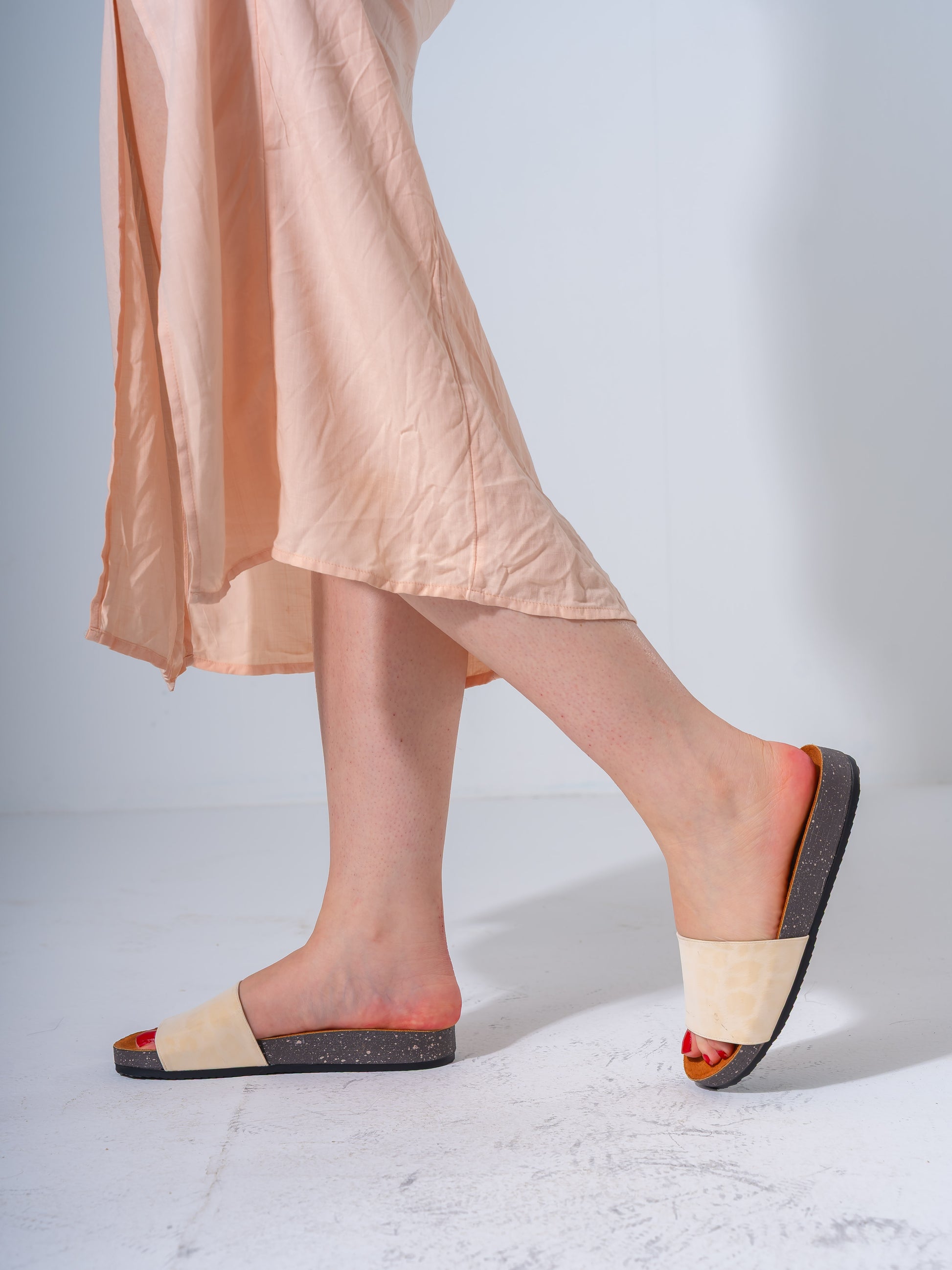 Leopard Print Platform Slides - BEIGE