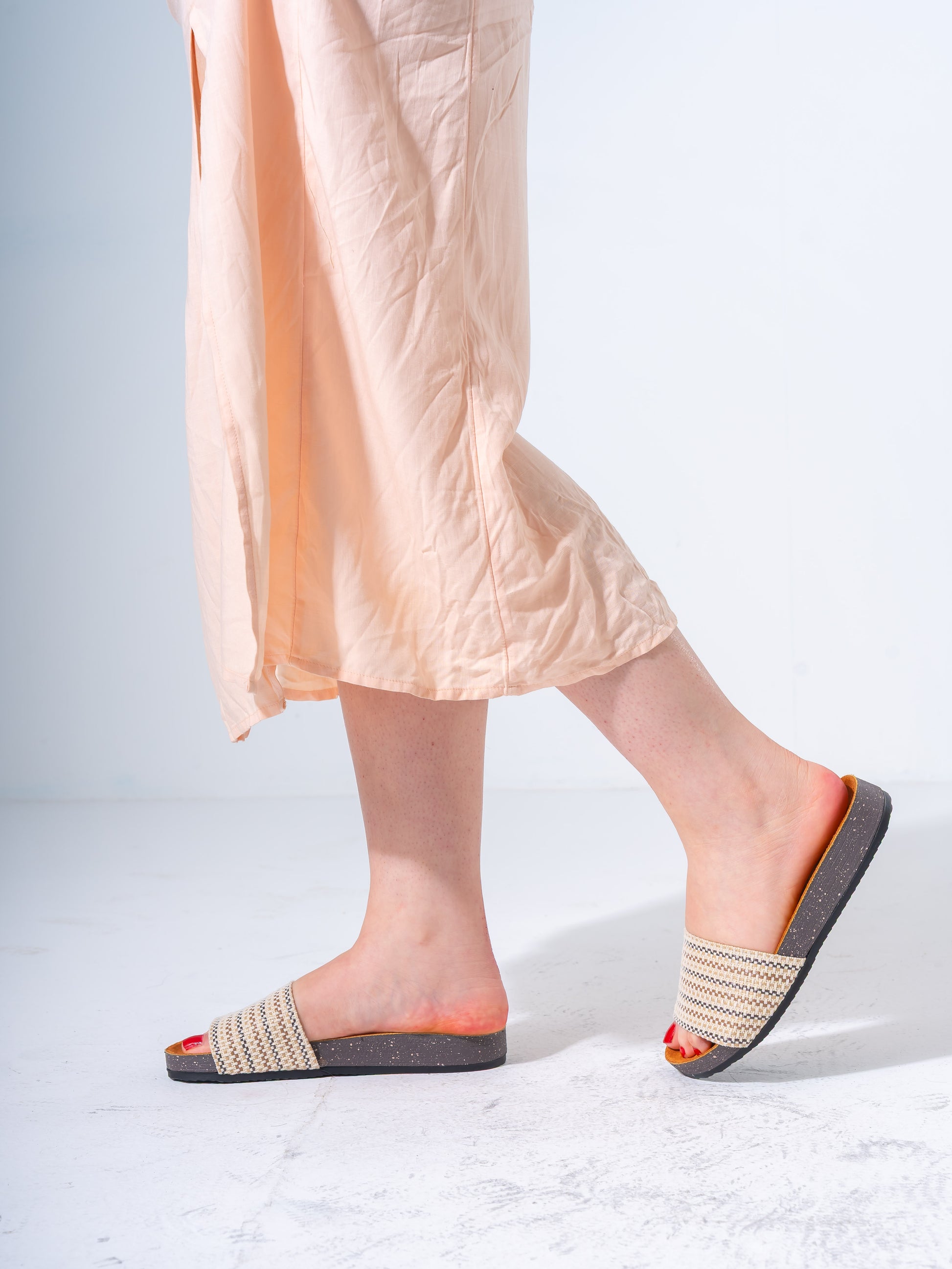 Step into ultimate comfort with these stylish, lightweight slides. Featuring a breathable woven strap and an ergonomic contoured footbed, these sandals are designed to provide support for all-day wear while keeping your look effortlessly chic.