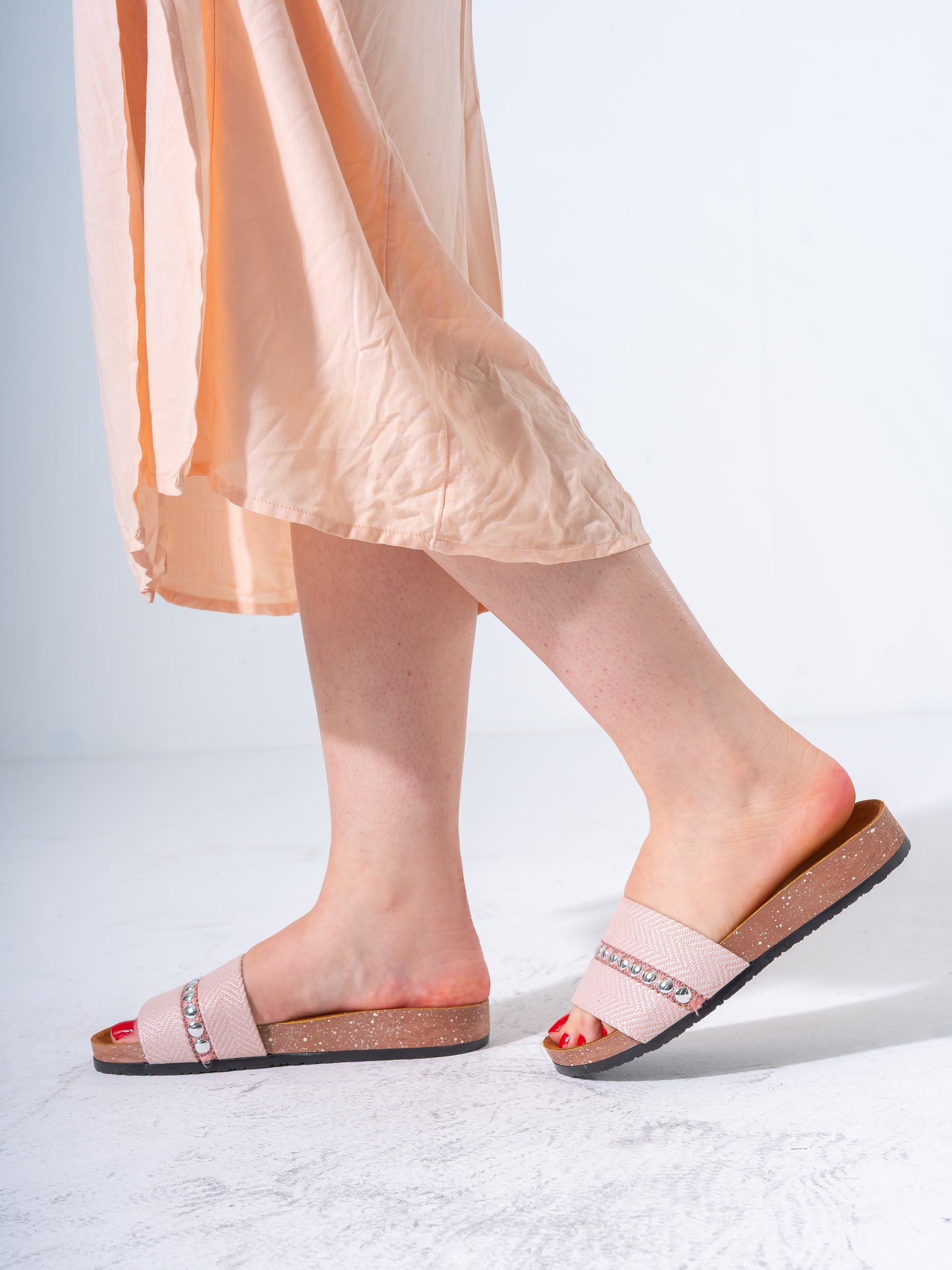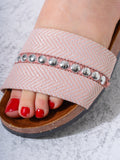Elevate your casual summer footwear with these sophisticated studded slides. Combining a classic herringbone woven pattern with modern metallic embellishments, these sandals offer a perfect blend of style and ease for your daily adventures.