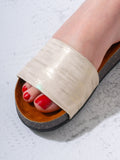 Snake-Effect Metallic Comfort Slides - BEIGE