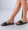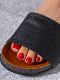 Snake-Effect Metallic Comfort Slides - BLACK