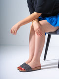 Add a touch of luxury to your casual wardrobe with these snake-effect slides. Featuring a sophisticated scaled textureand a subtle metallic shimmer, these sandals combine a high-fashion look with the everyday comfort of a contoured footbed.