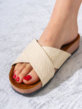Elevate your casual look with these chic cross-strap sandals. Featuring a textured embossed finish and an ergonomic footbed, they offer the perfect blend of modern style and everyday comfort.